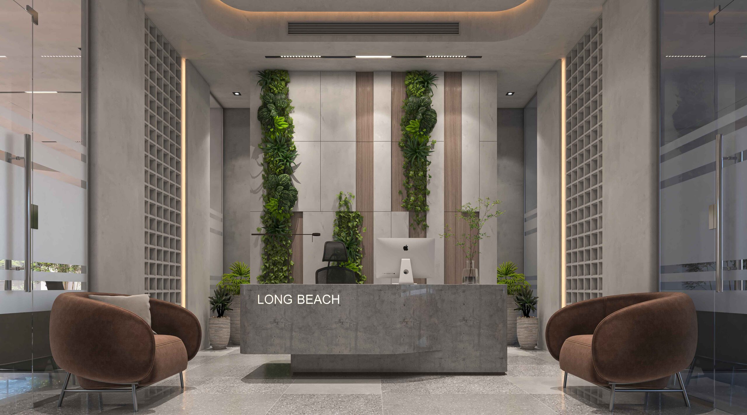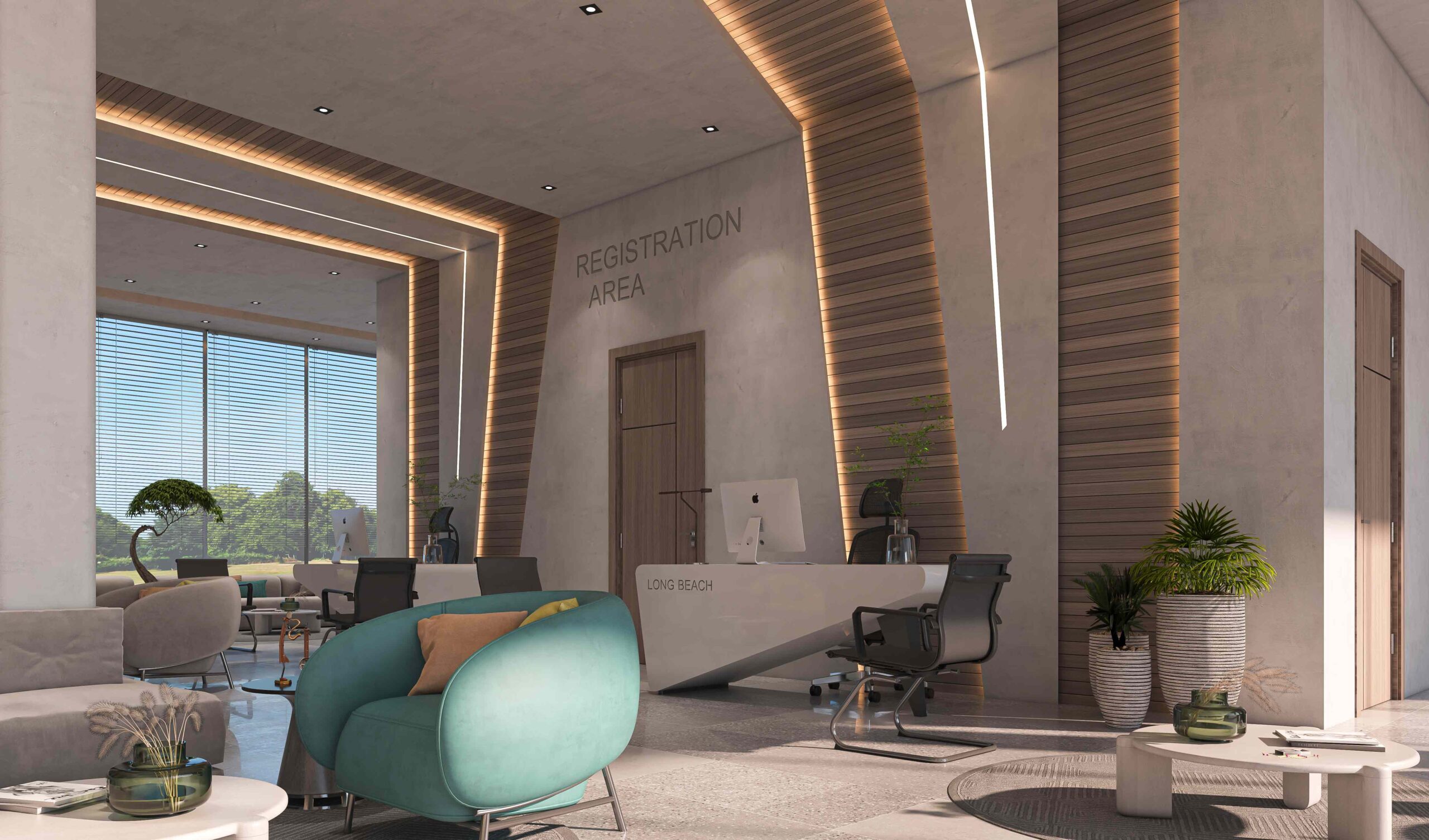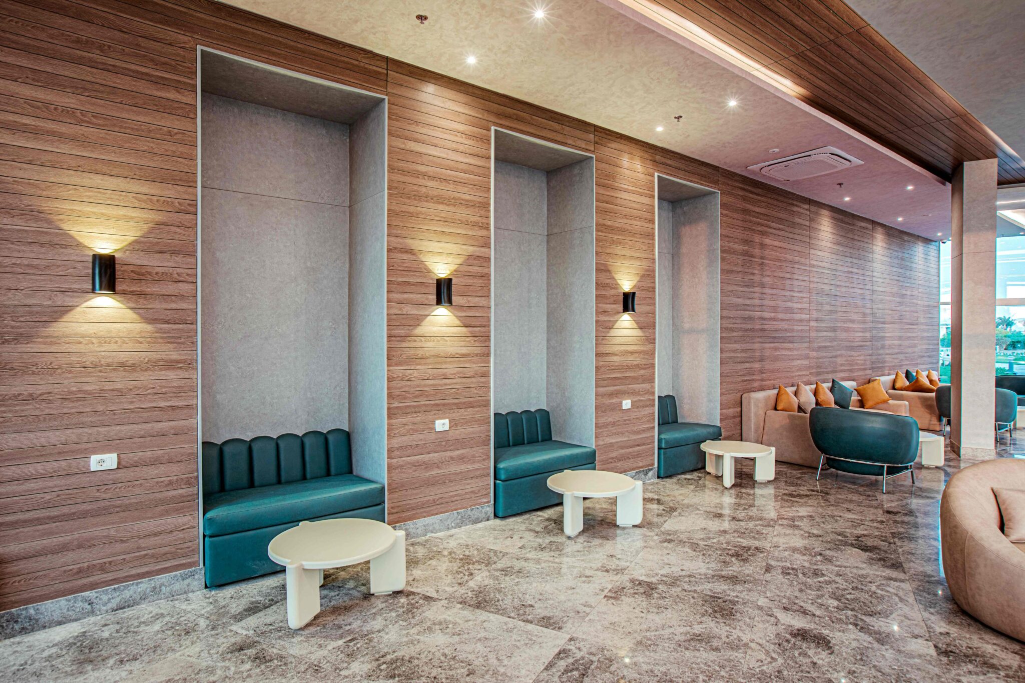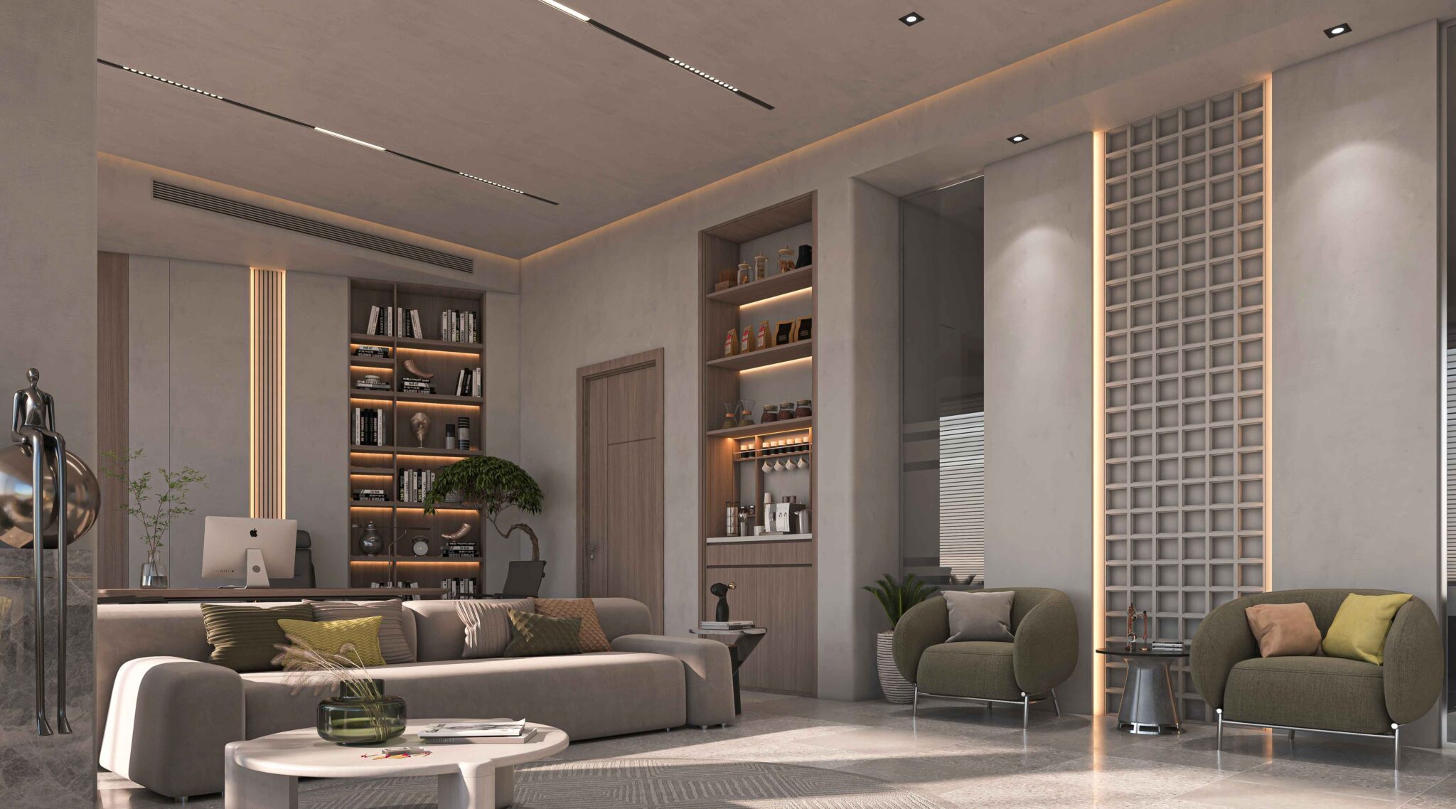 Zia Company has the credit for designing and constructing a sophisticated hotel lobby that blends contemporary elegance with a welcoming atmosphere, providing guests with a refreshing and stylish first impression upon arrival.