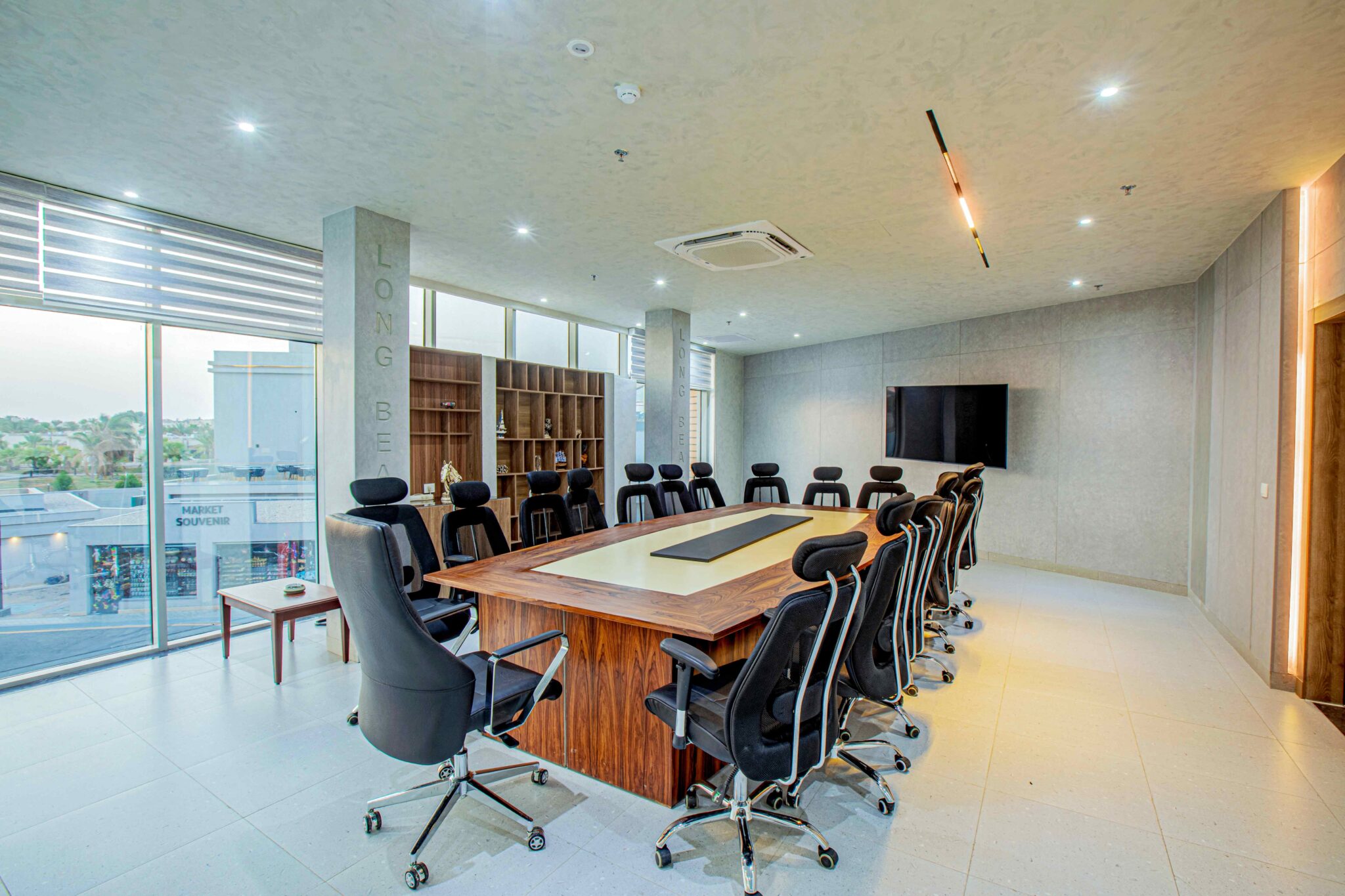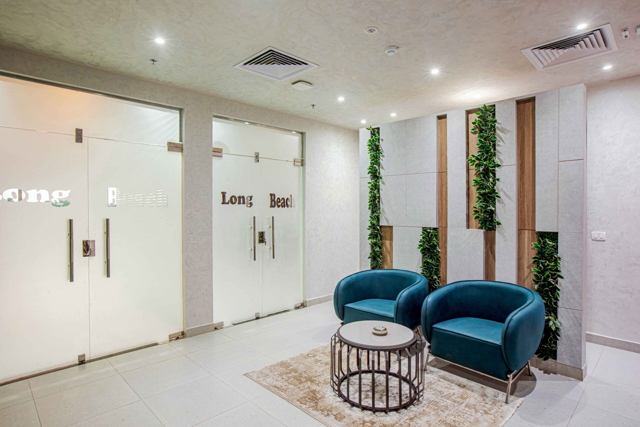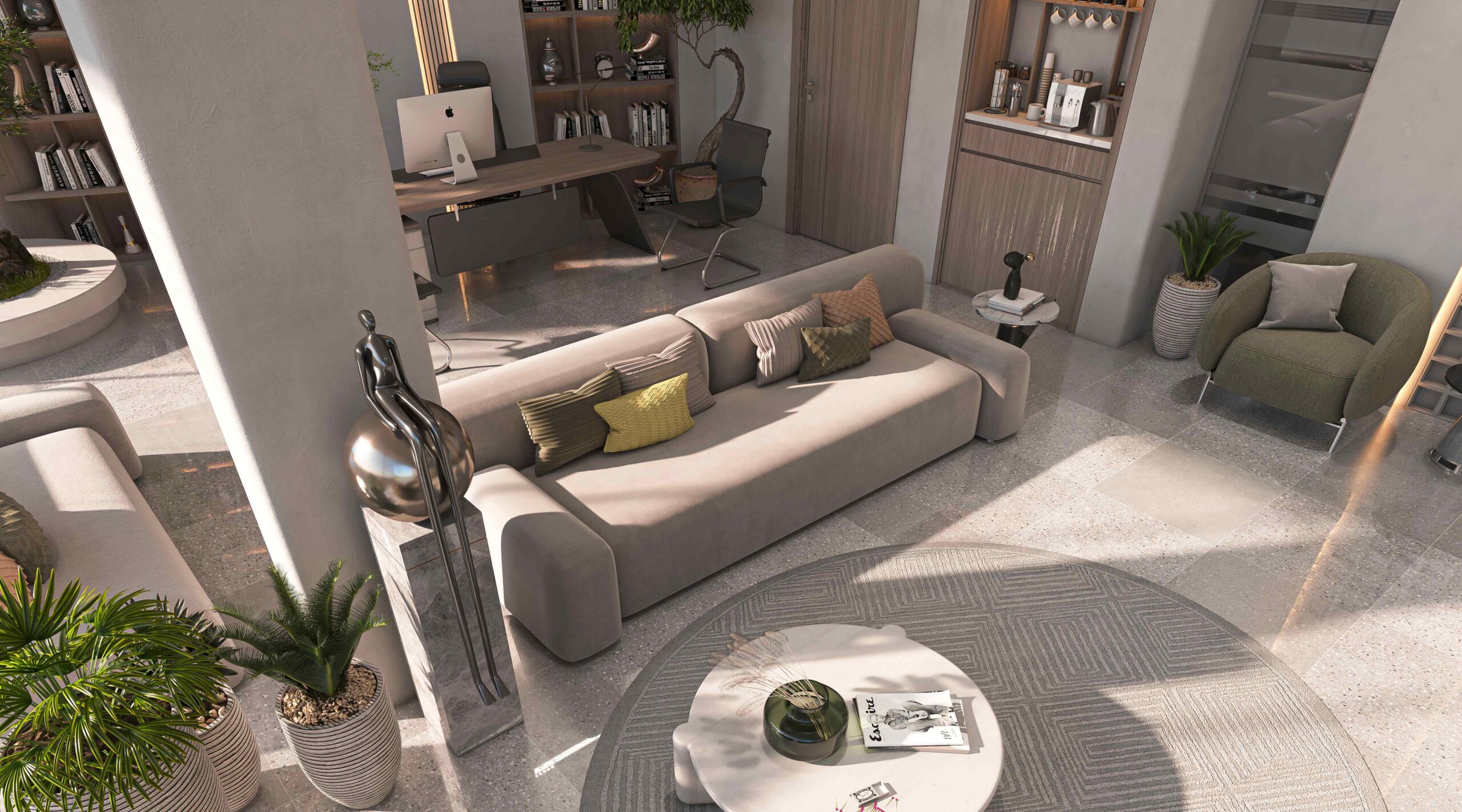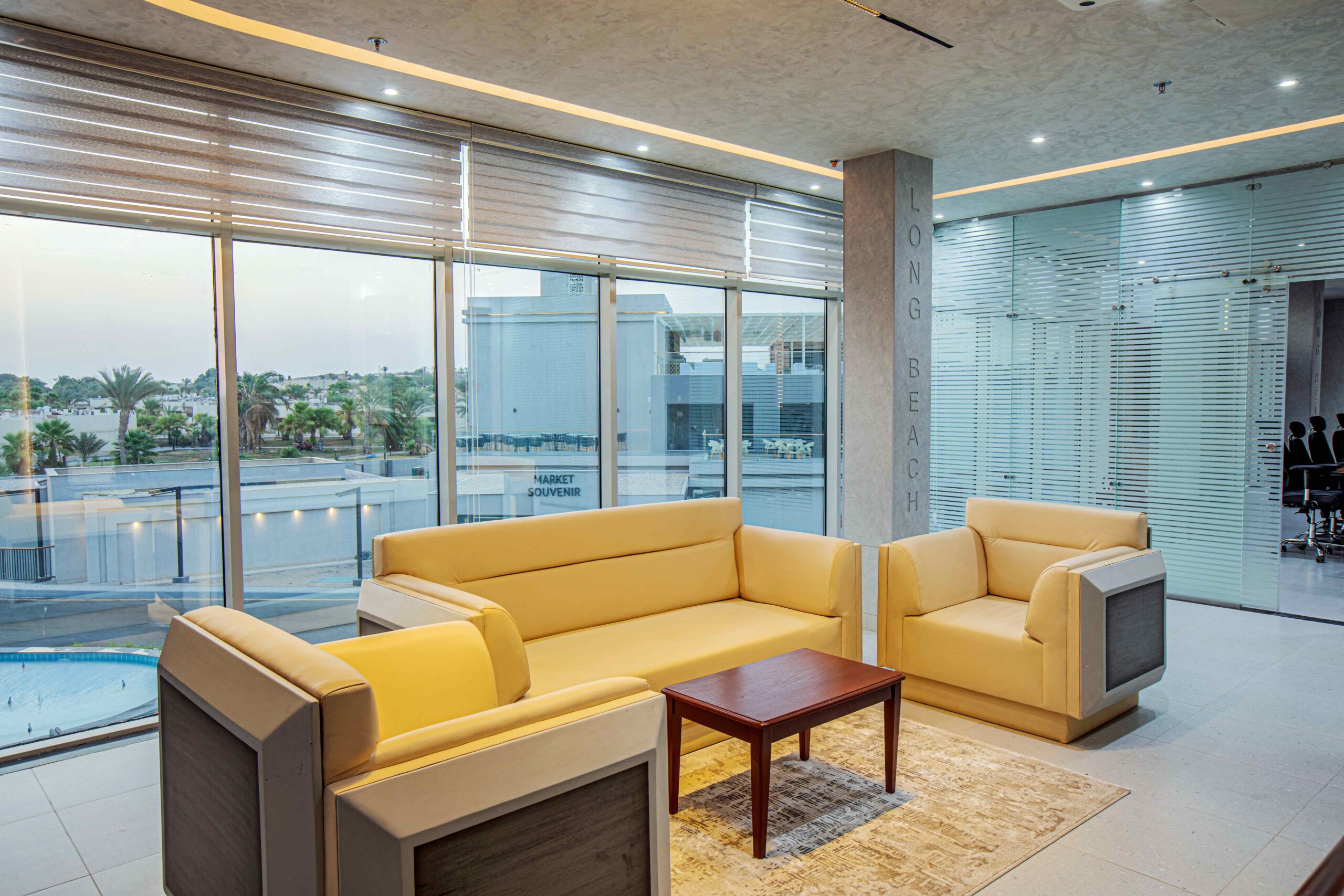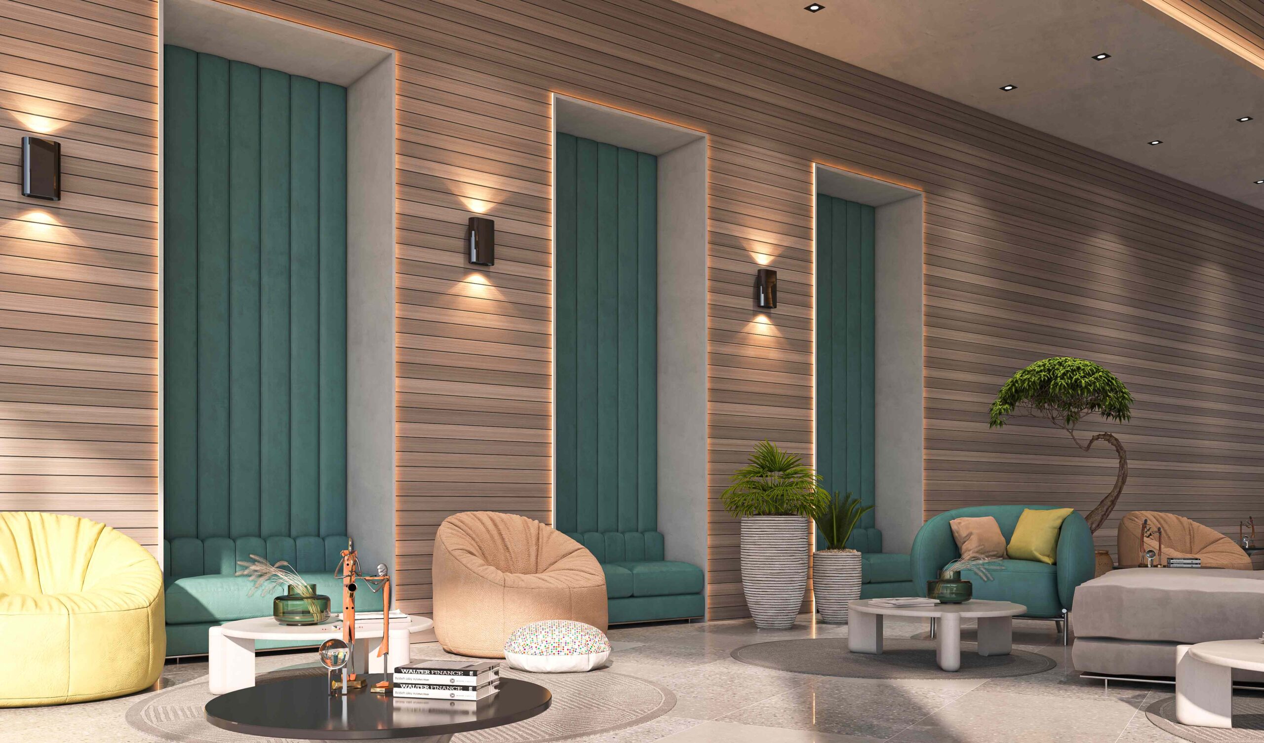 Zia Company has the credit for designing and constructing a sophisticated hotel lobby that blends contemporary elegance with a welcoming atmosphere, providing guests with a refreshing and stylish first impression upon arrival.