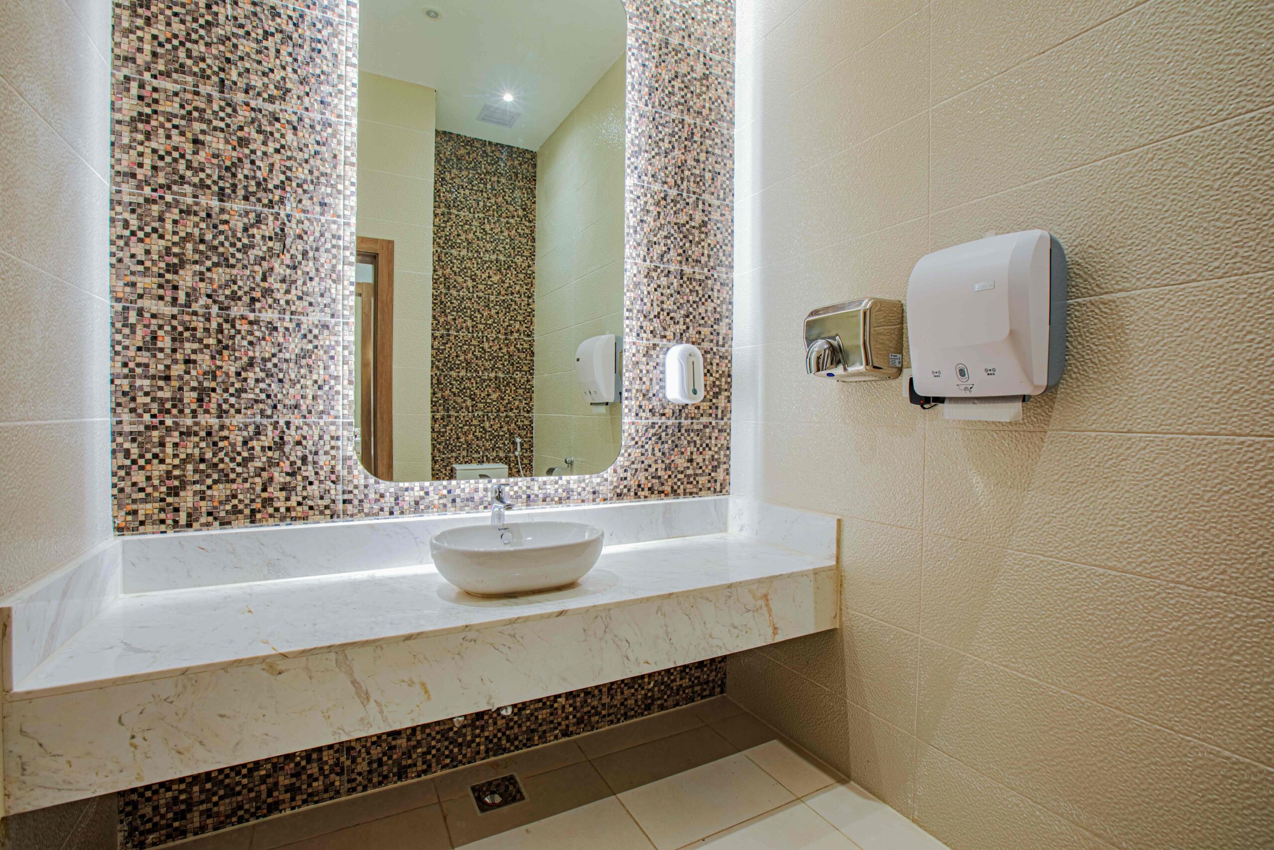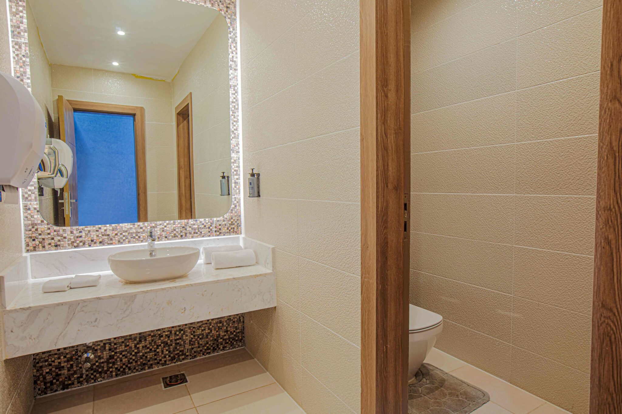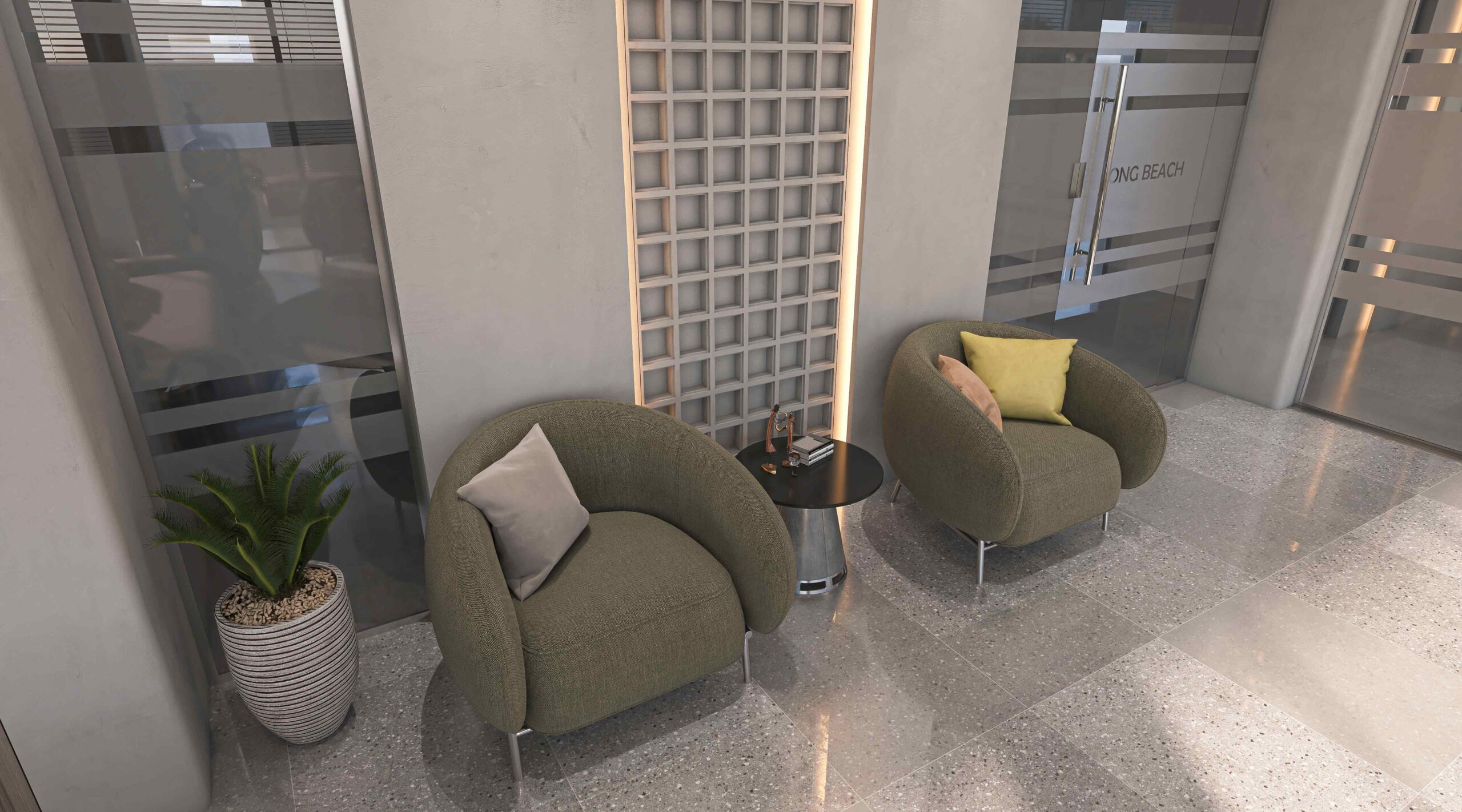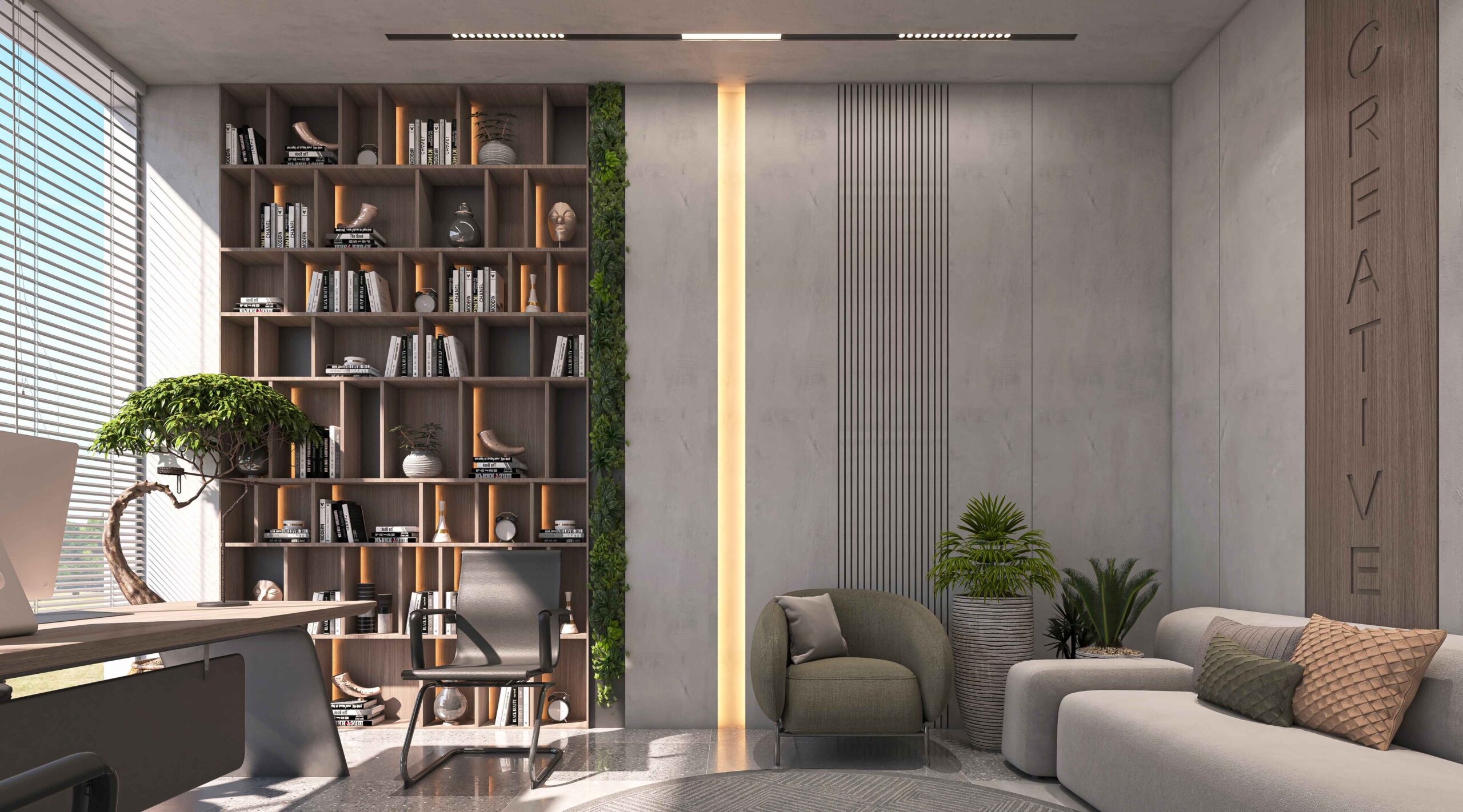 Zia Company has the credit for designing and constructing a sophisticated hotel lobby that blends contemporary elegance with a welcoming atmosphere, providing guests with a refreshing and stylish first impression upon arrival.