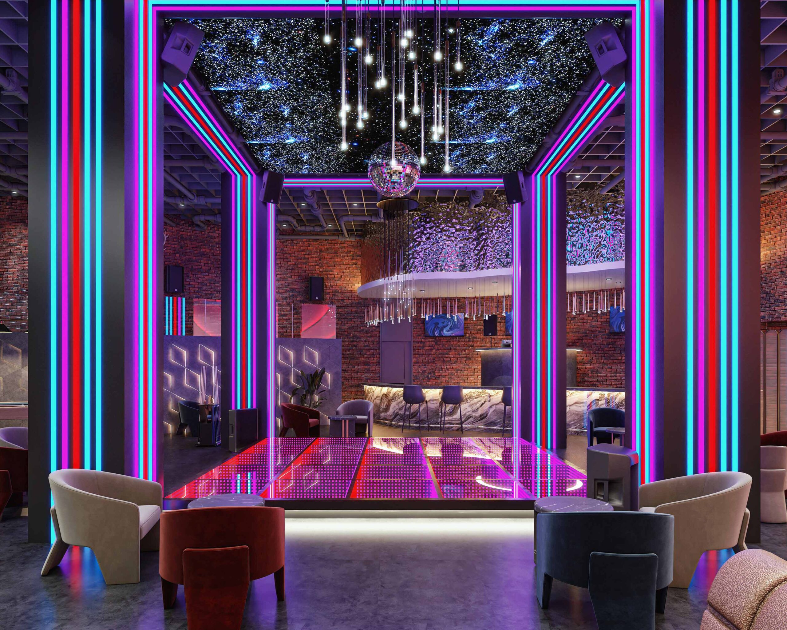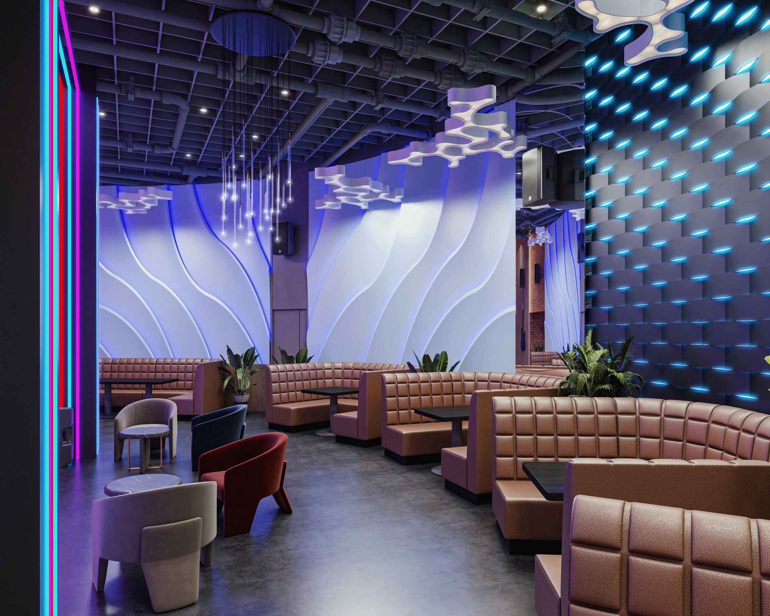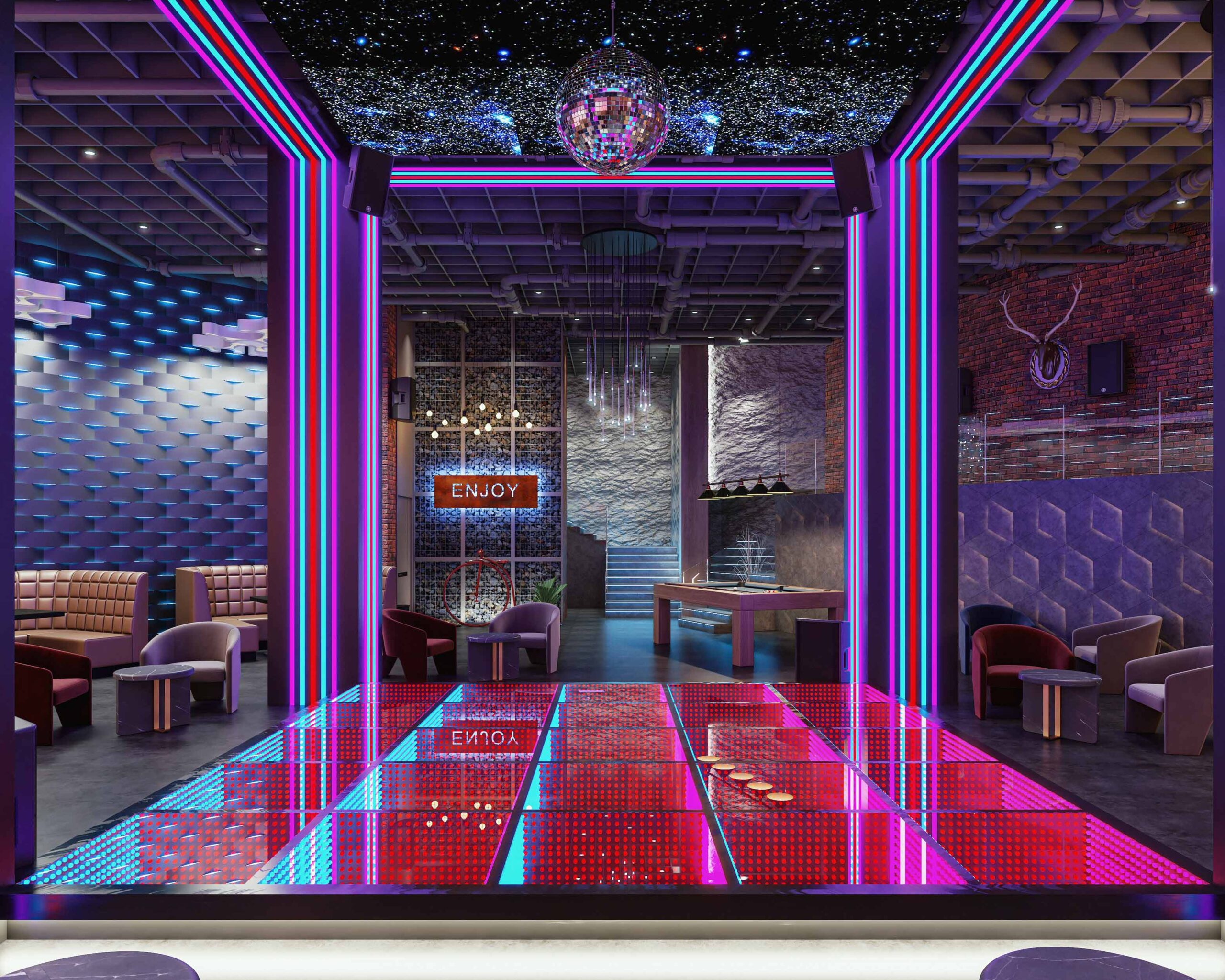 disco Total Area: 370 m2 disco Zia Company has the credit for designing a vibrant disco, incorporating dynamic and modern design elements to create an energetic atmosphere. The space is crafted to deliver an unforgettable nightlife experience. Total Area: 370 m2