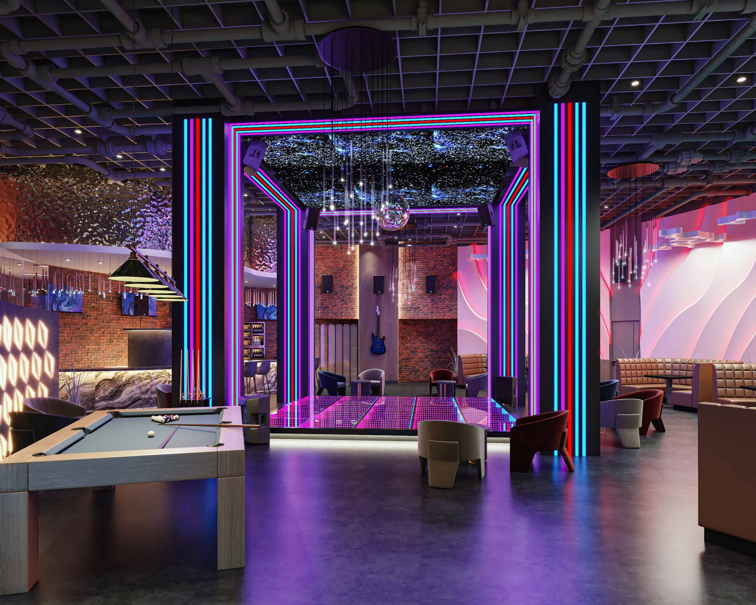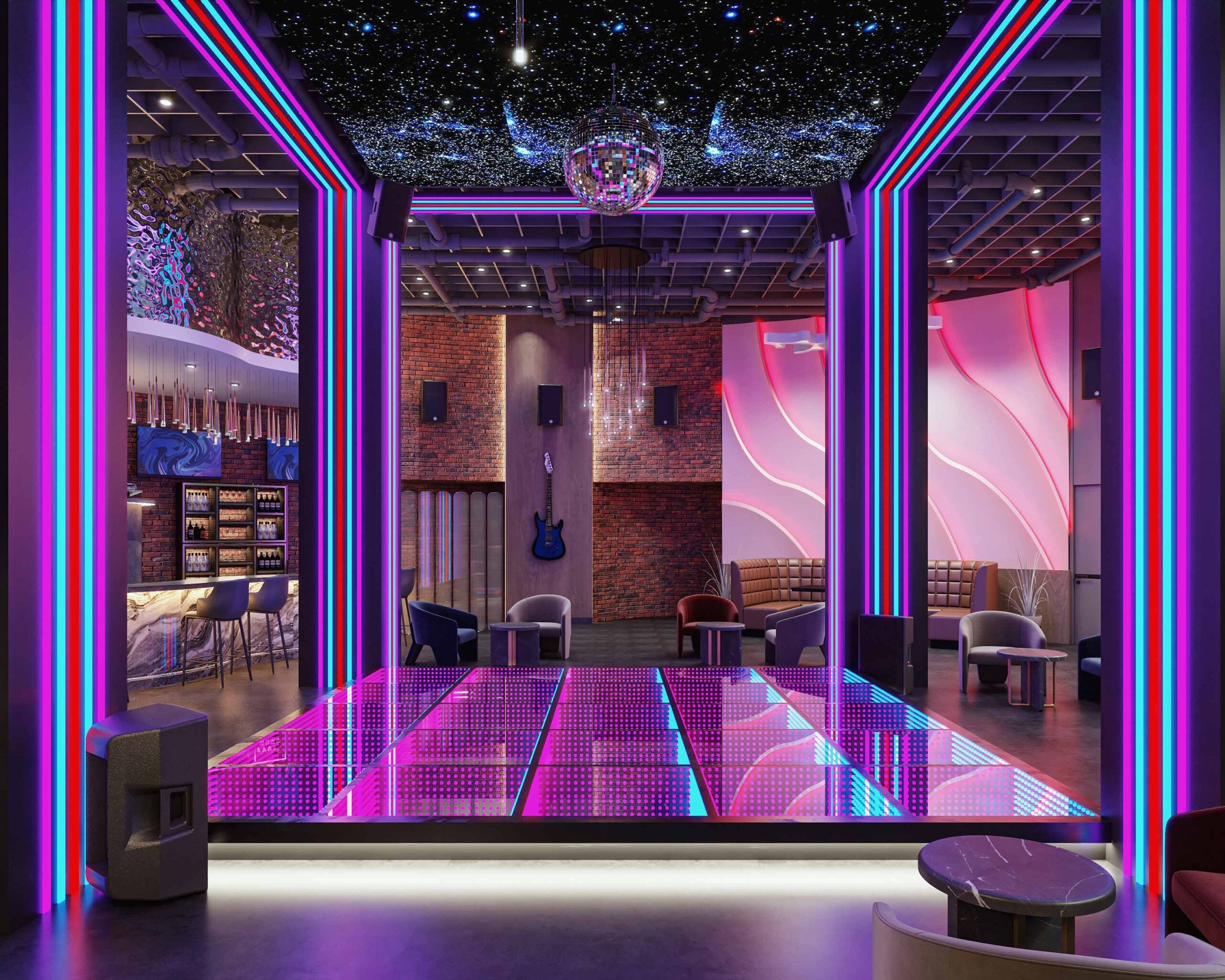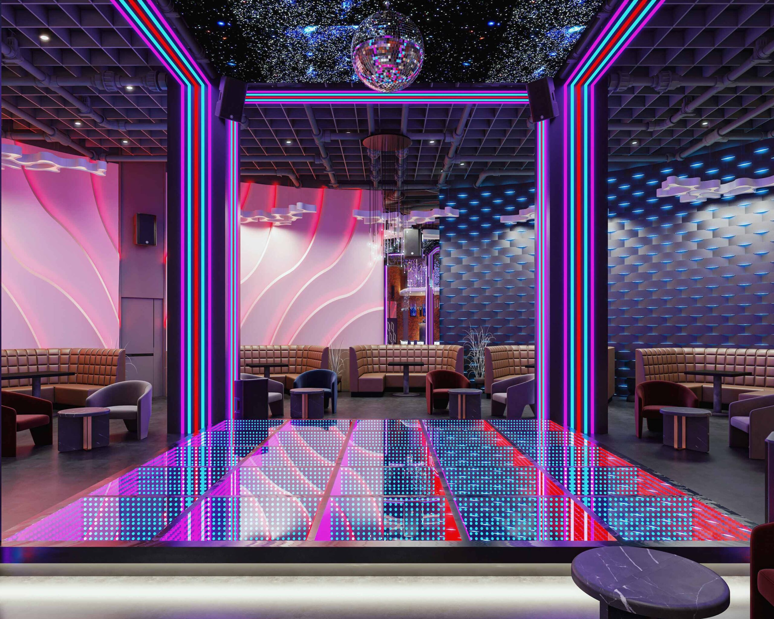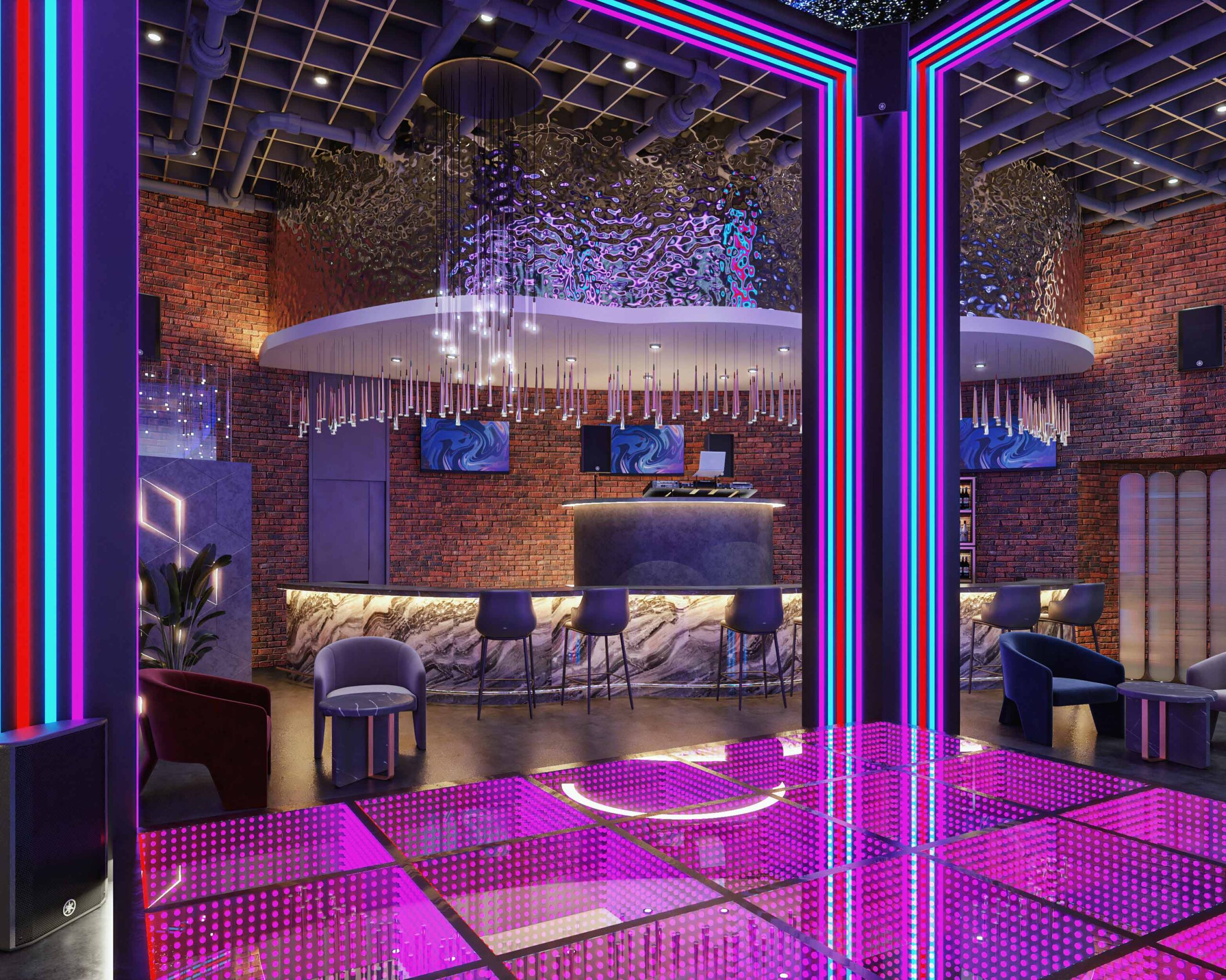 disco Total Area: 370 m2 disco Zia Company has the credit for designing a vibrant disco, incorporating dynamic and modern design elements to create an energetic atmosphere. The space is crafted to deliver an unforgettable nightlife experience. Total Area: 370 m2