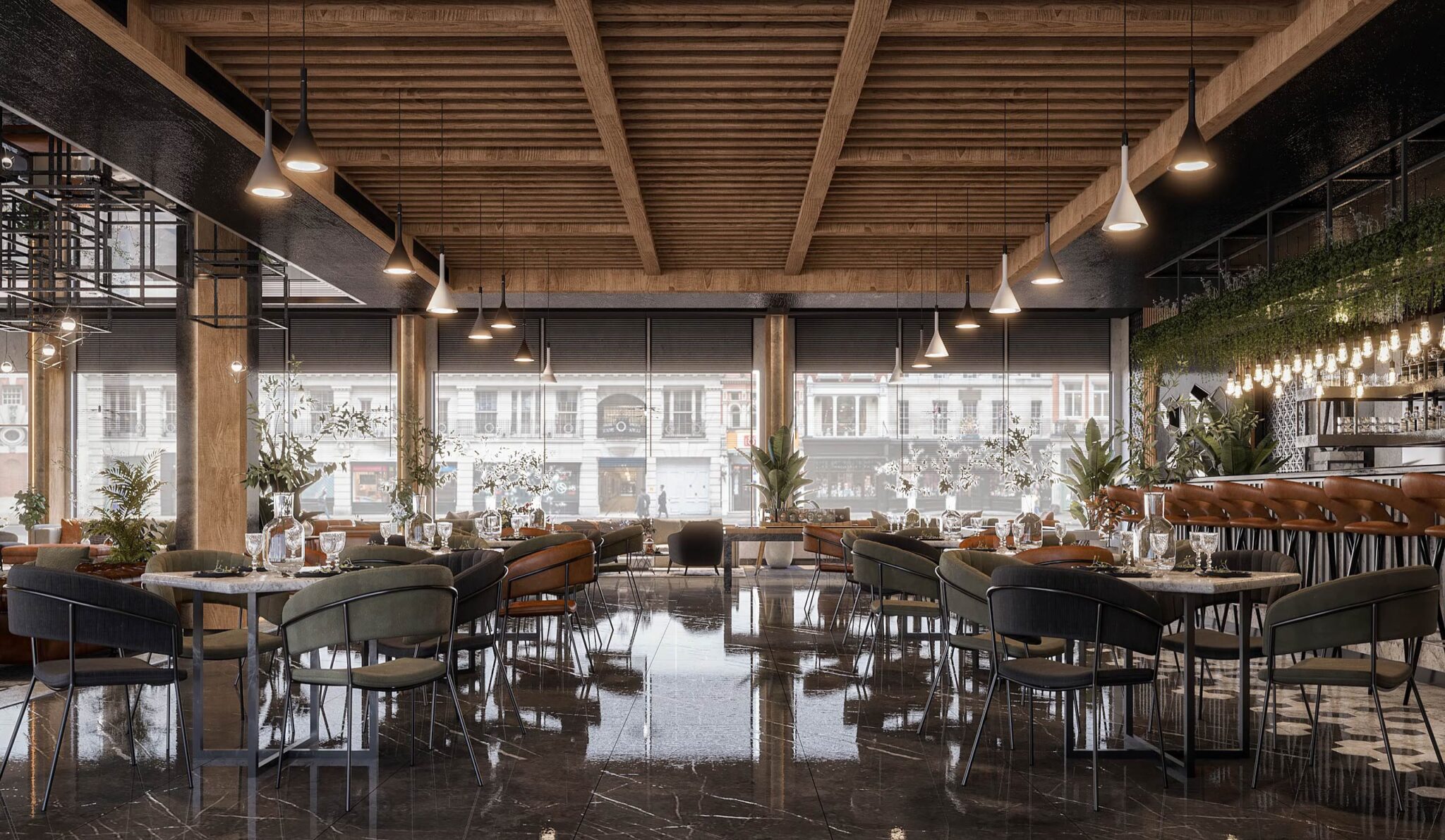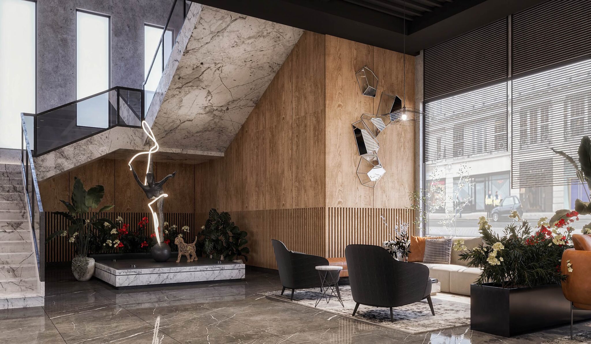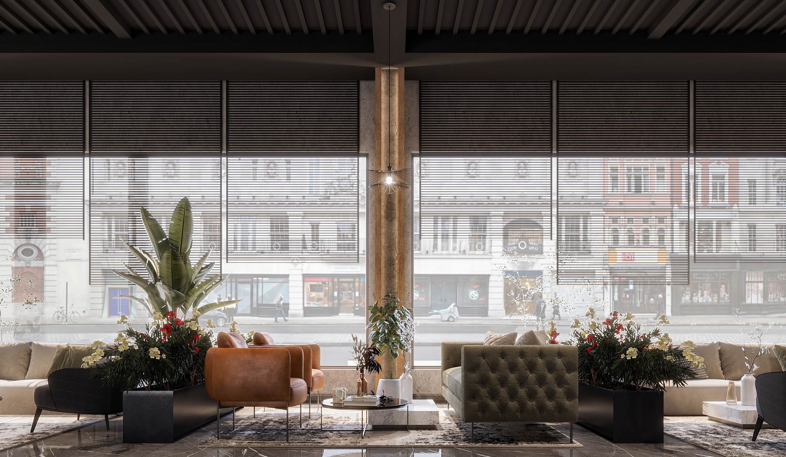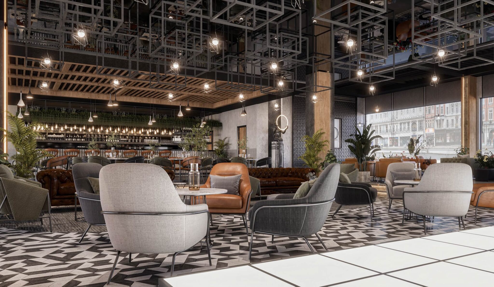 launge Total Area: 1320 m2 launge Zia Company has the credit for designing a stylish hotel lounge that seamlessly blends contemporary design with comfort. The space features elegant furnishings and ambient lighting, offering guests a relaxed and inviting environment. Total Area: 1320 m2