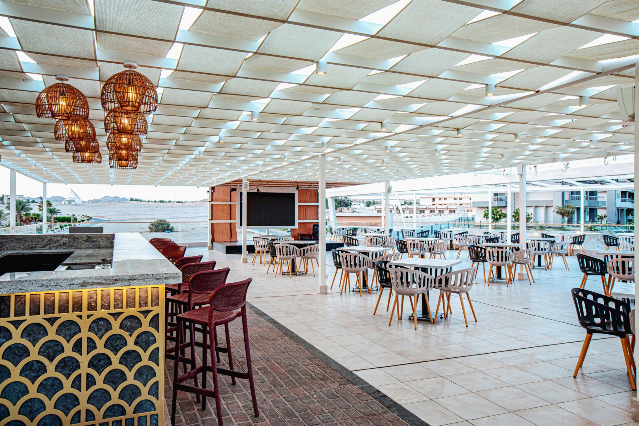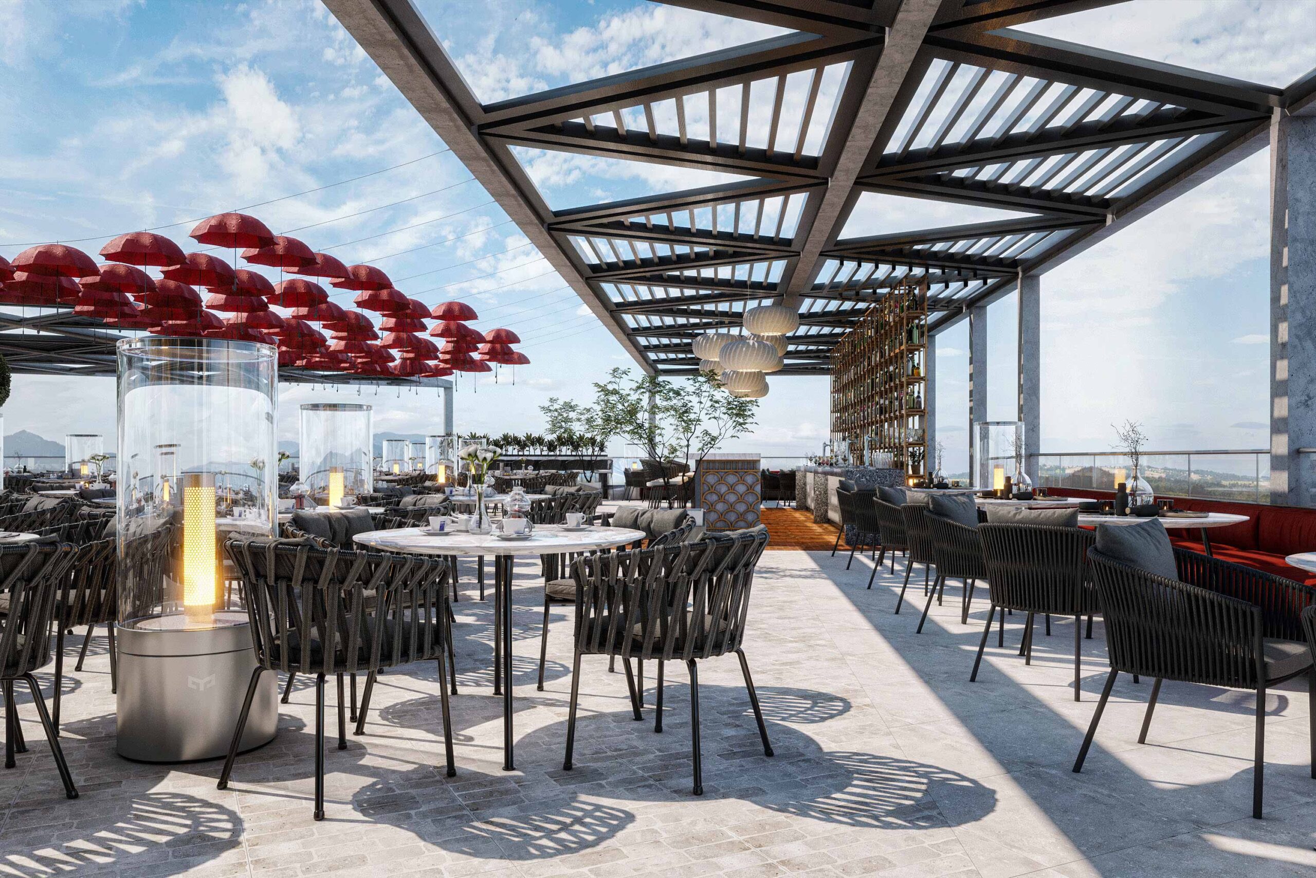 Zia Company has the credit for redesigning and constructing The Sky Roof Café, a stunning blend of modern design and elevated ambiance. This unique space offers guests a breathtaking experience by combining contemporary aesthetics with panoramic views.