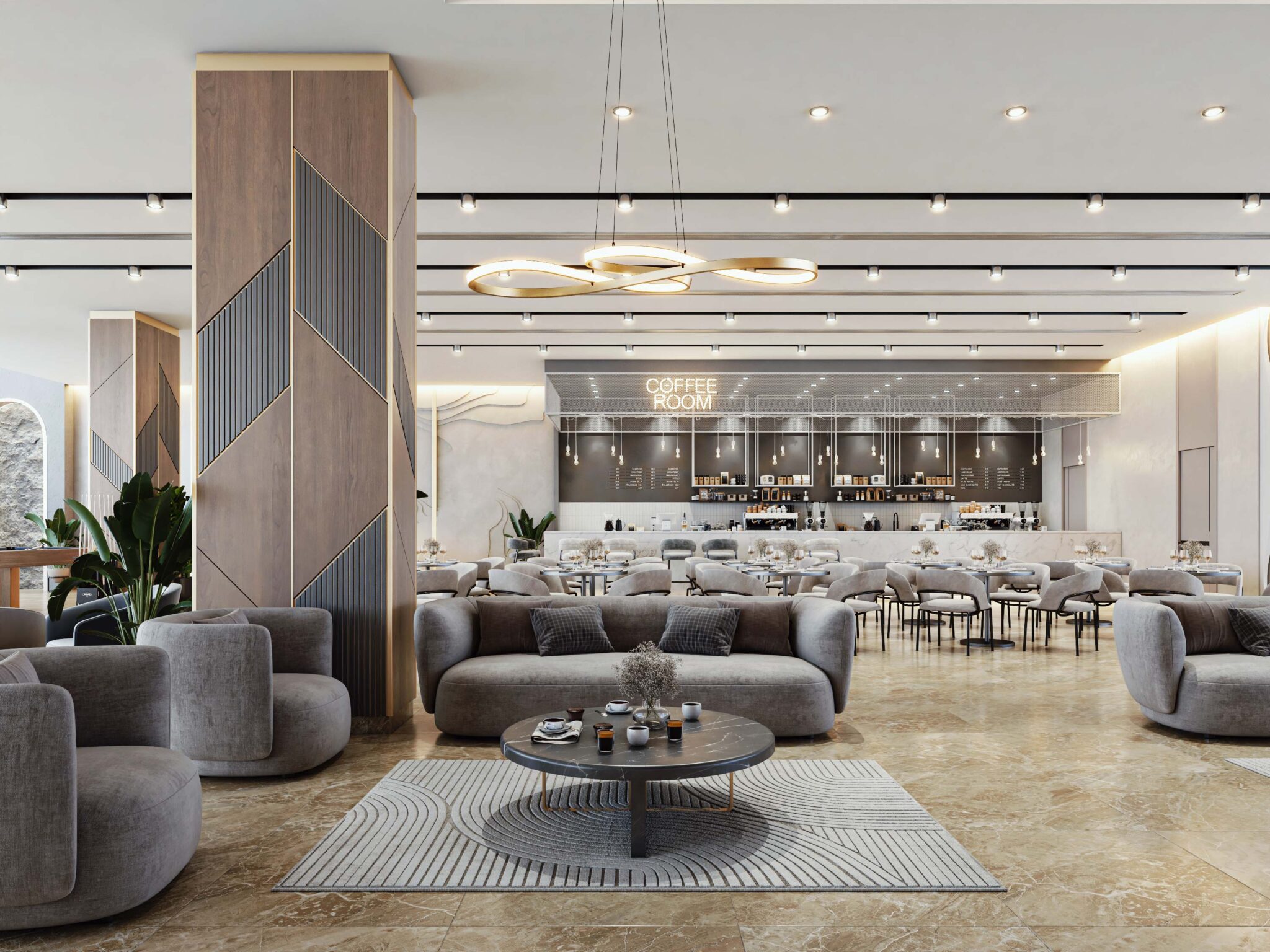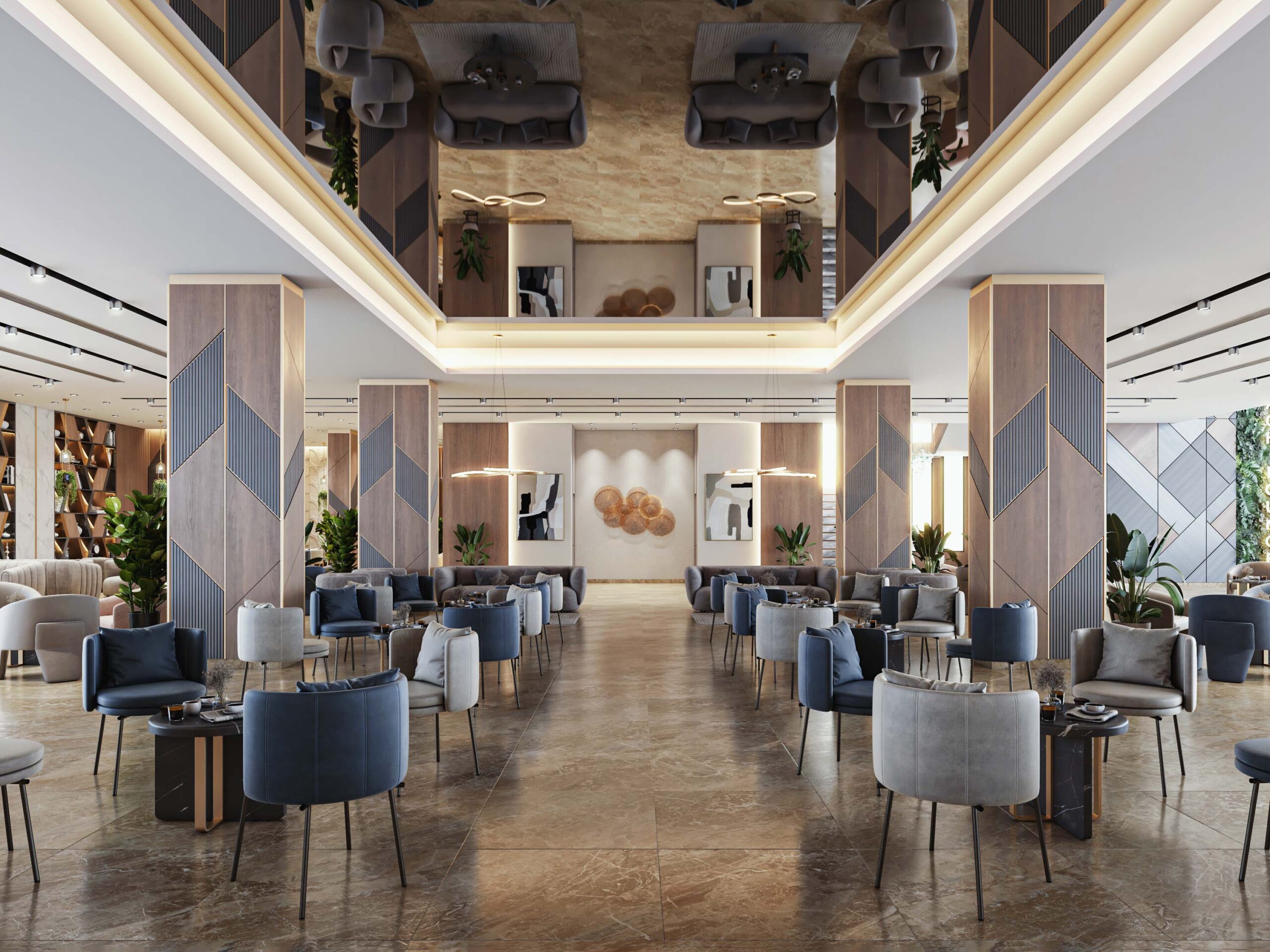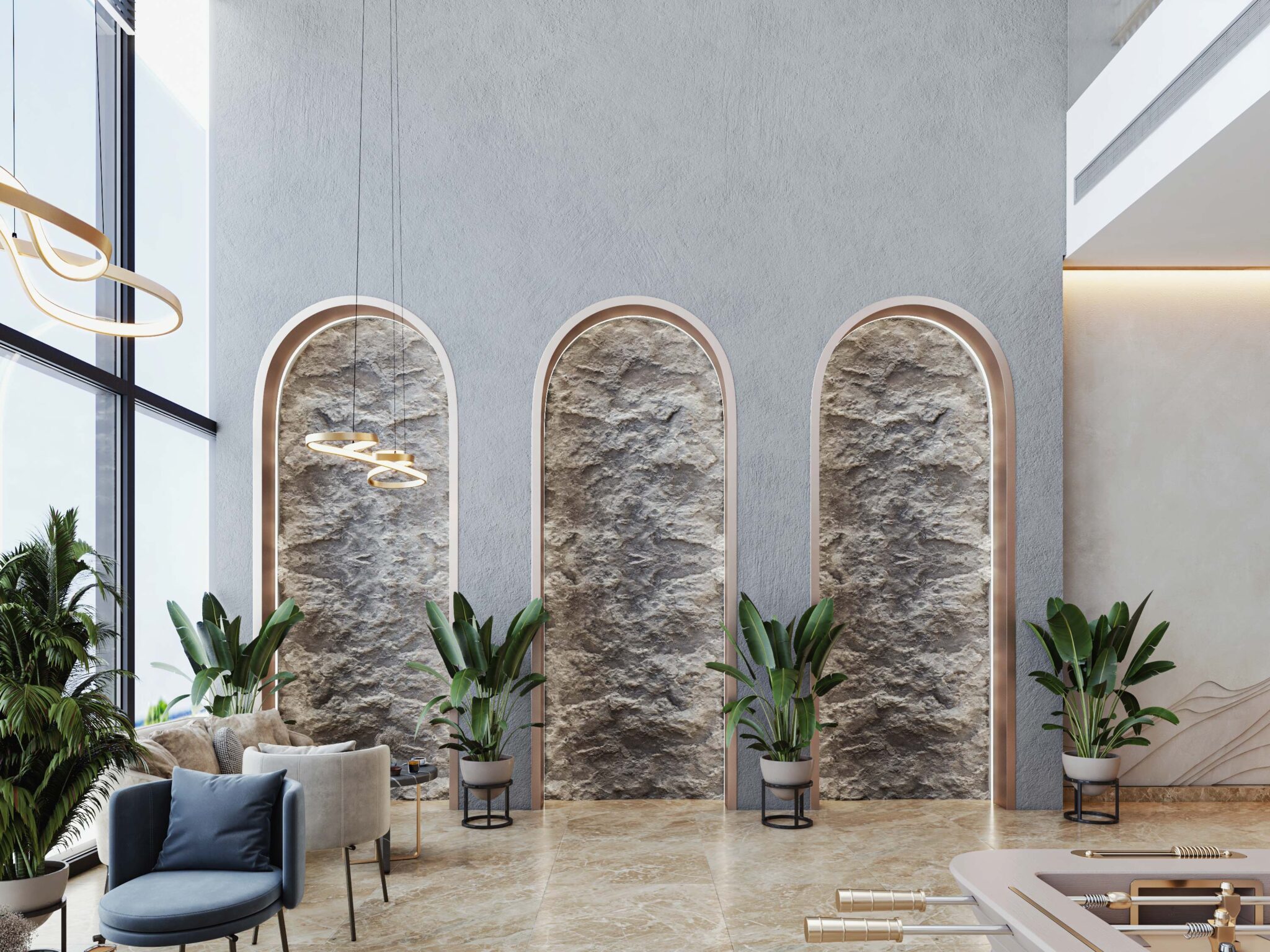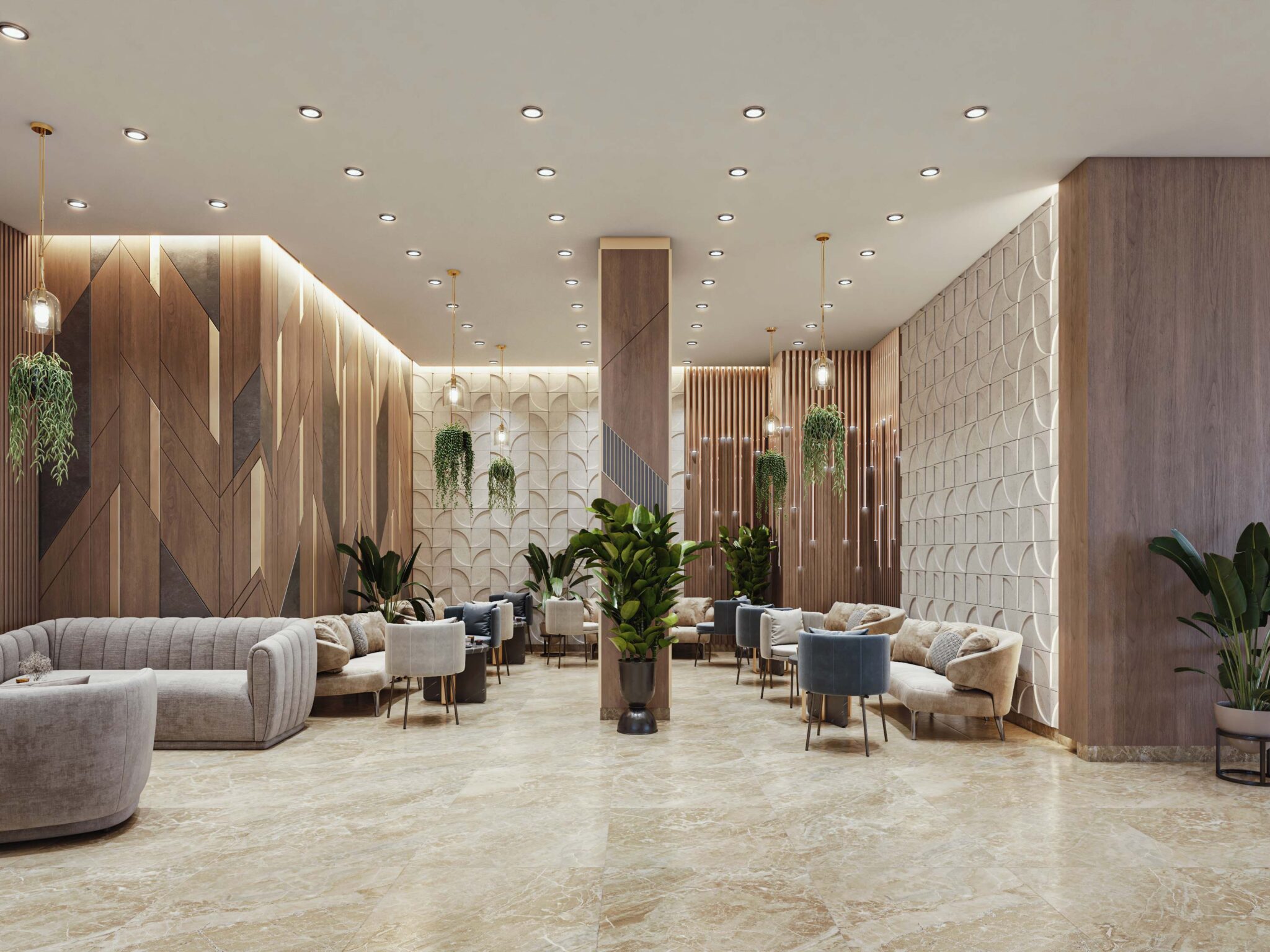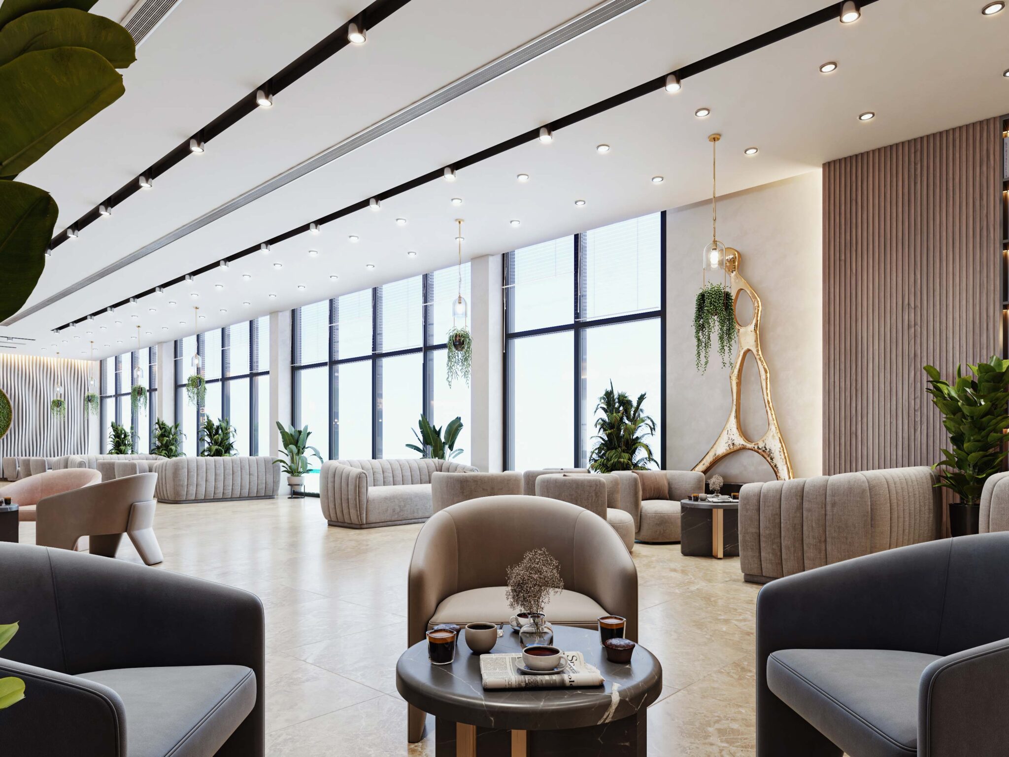Zia company has the credit for designing this modern lounge, thoughtfully incorporating a stylish bar and a dedicated billiard area for guests. This space seamlessly blends contemporary design with leisure, offering an inviting atmosphere for socializing and relaxation.