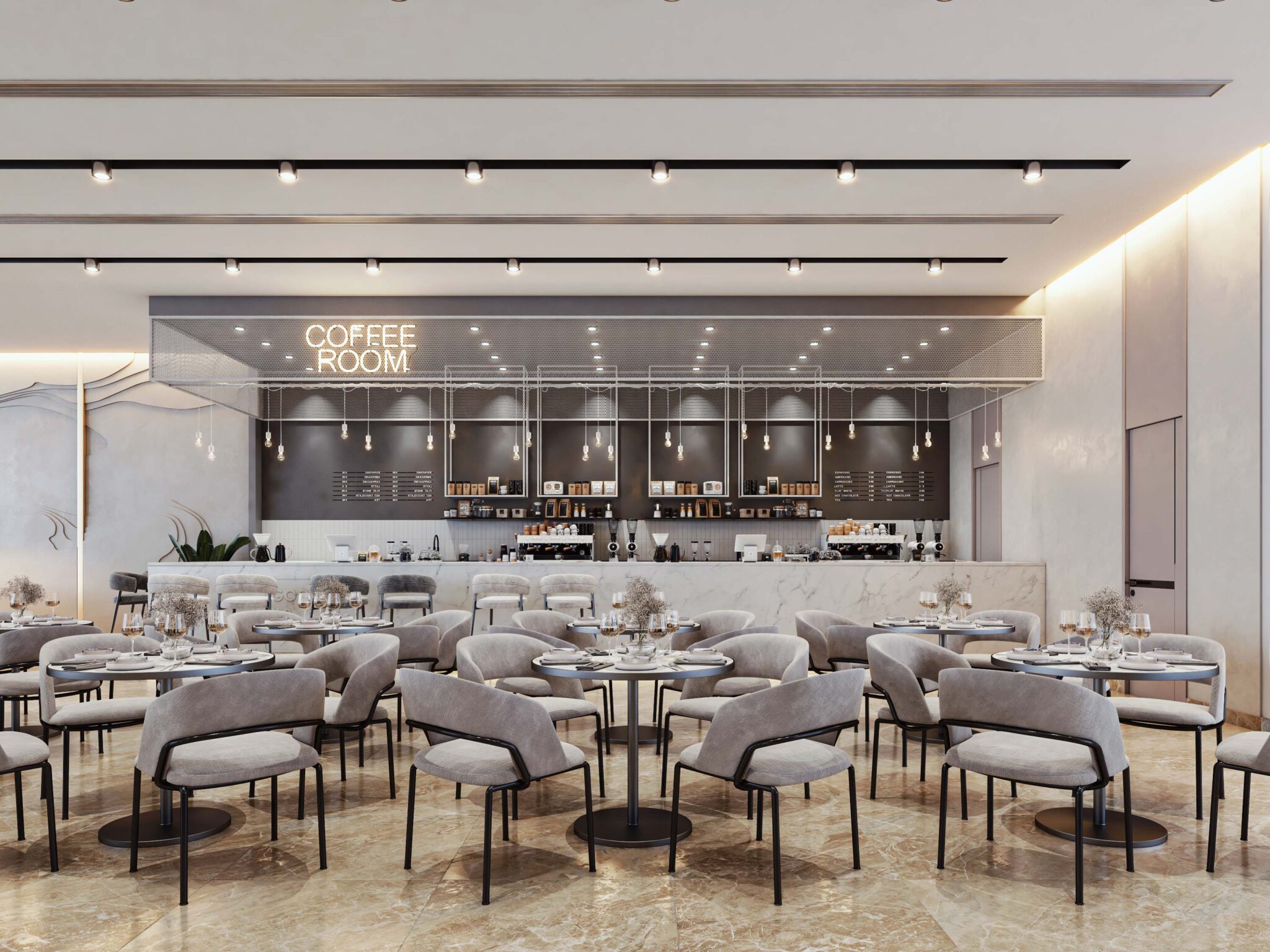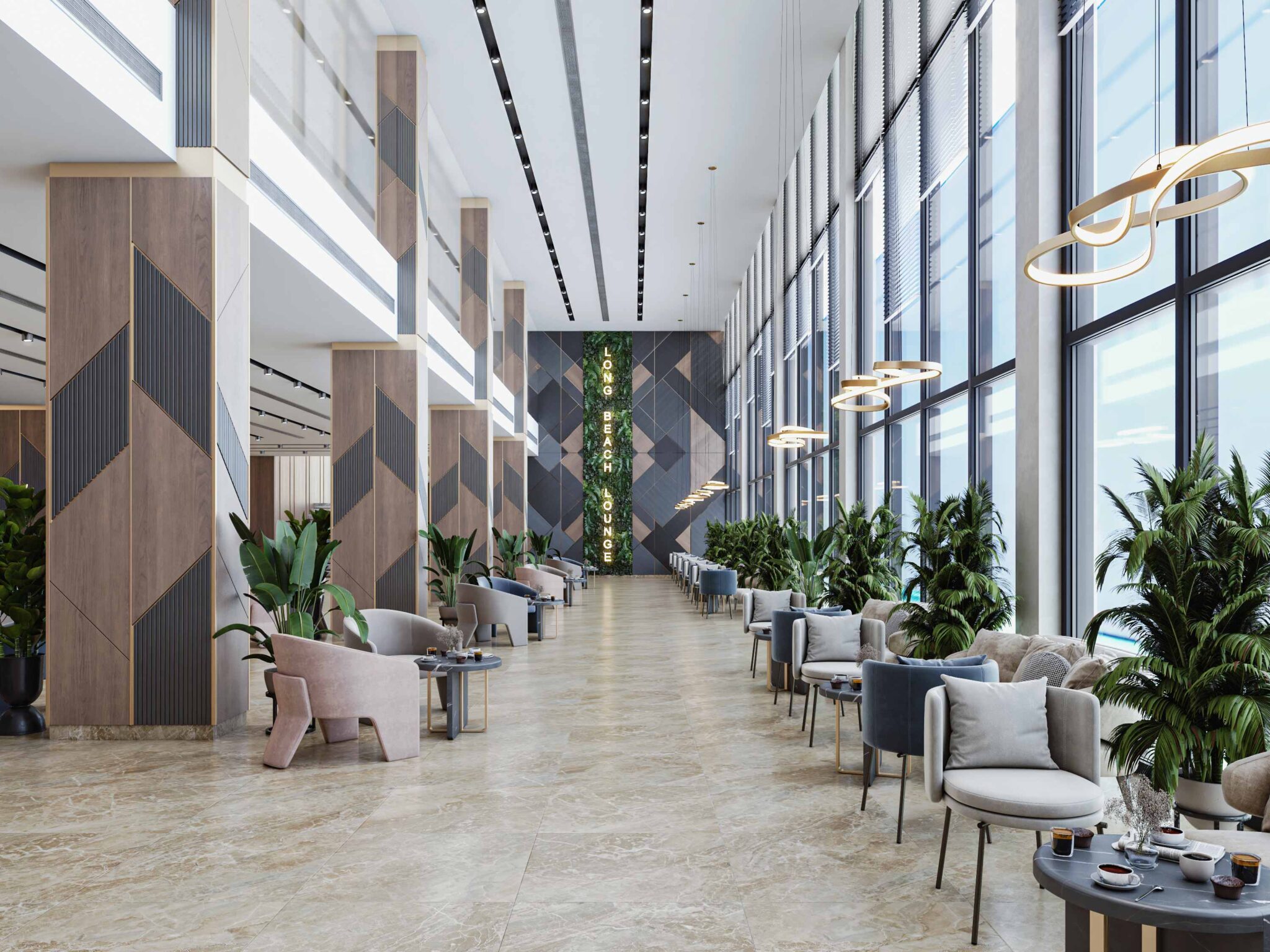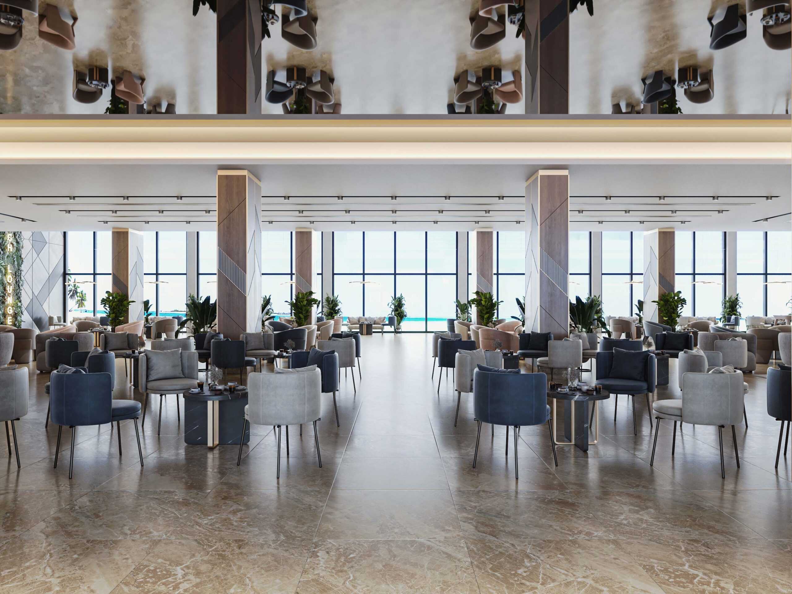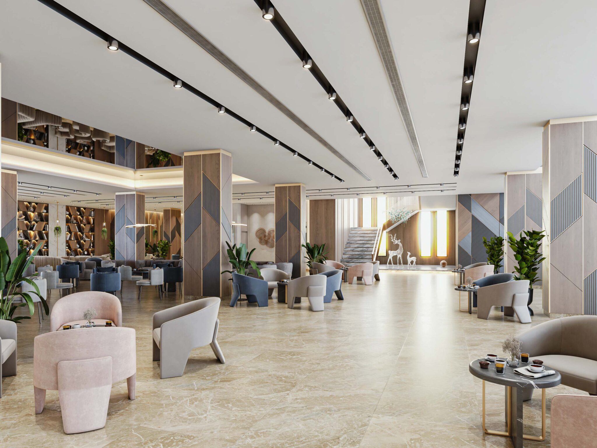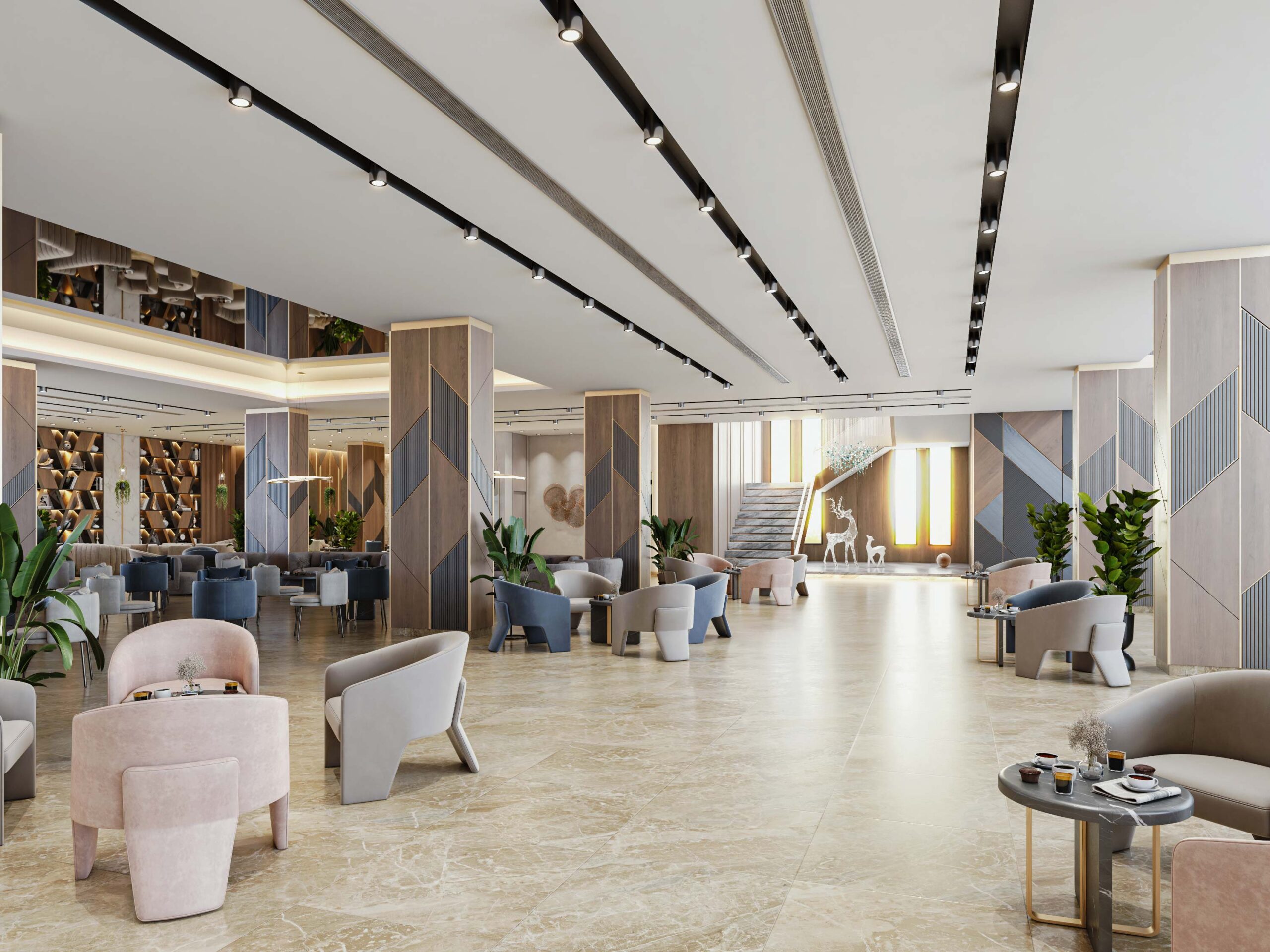Zia company has the credit for designing this modern lounge, thoughtfully incorporating a stylish bar and a dedicated billiard area for guests. This space seamlessly blends contemporary design with leisure, offering an inviting atmosphere for socializing and relaxation.