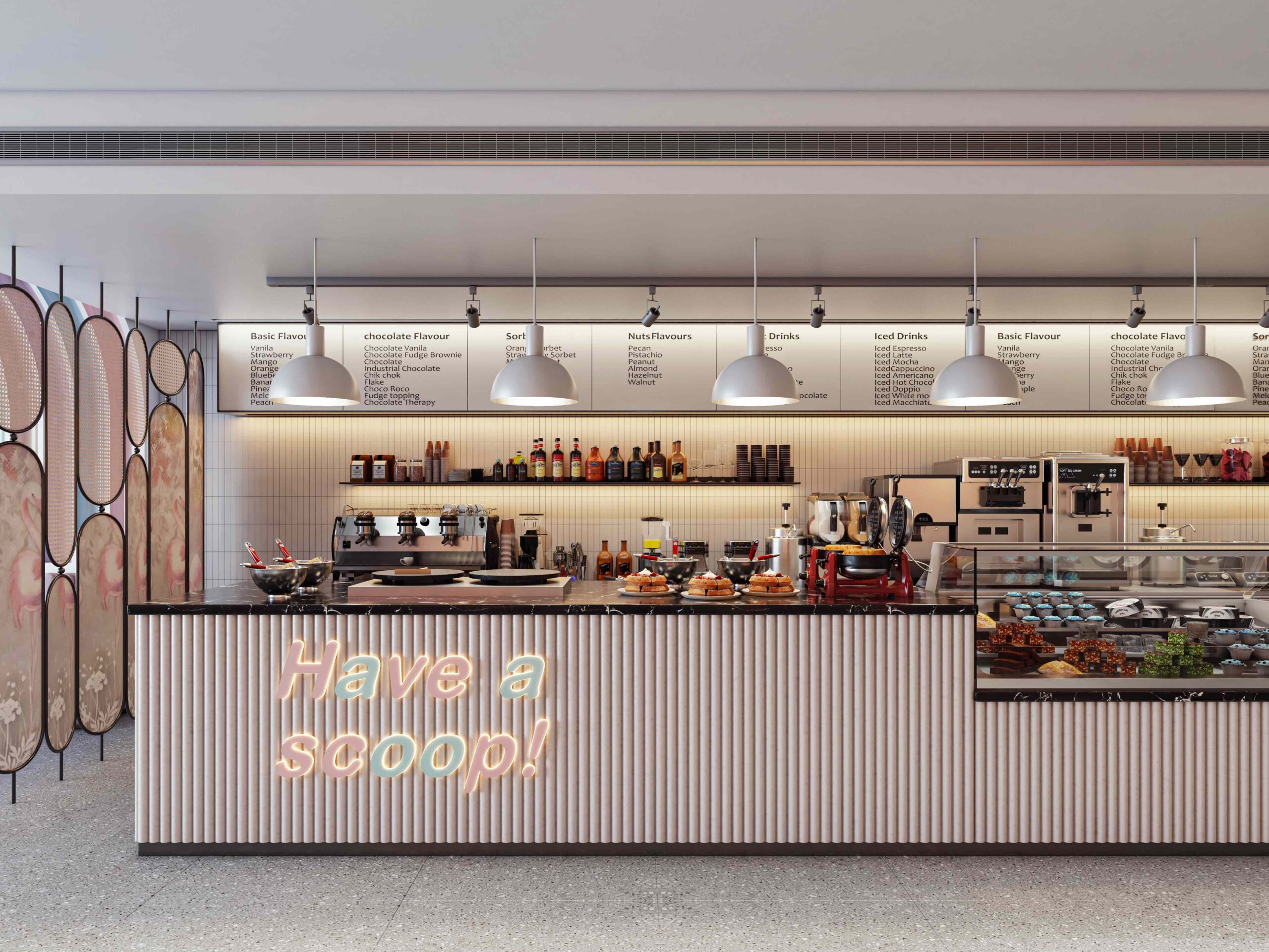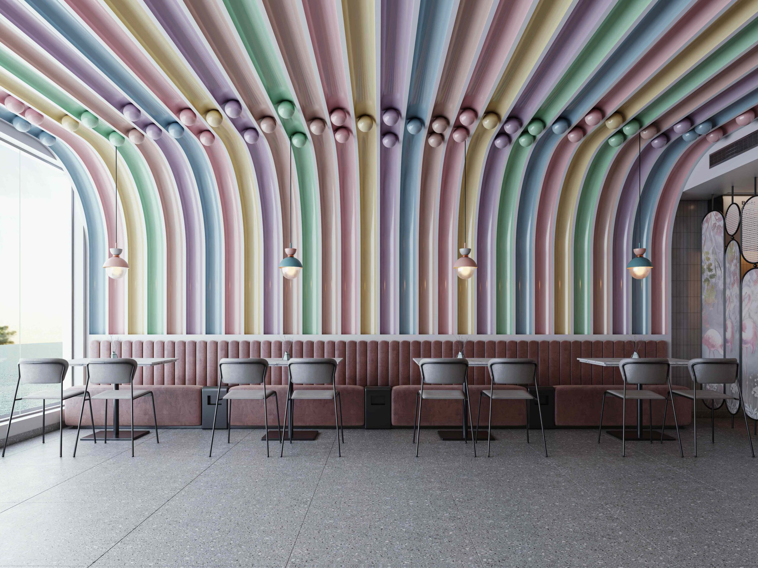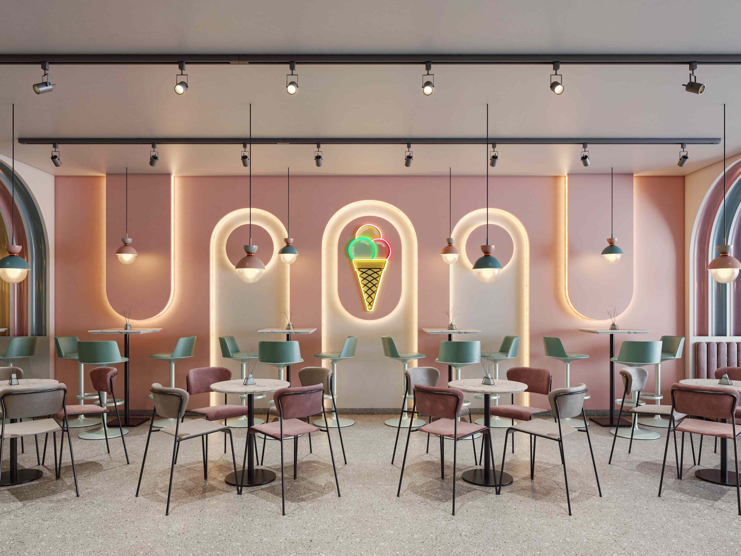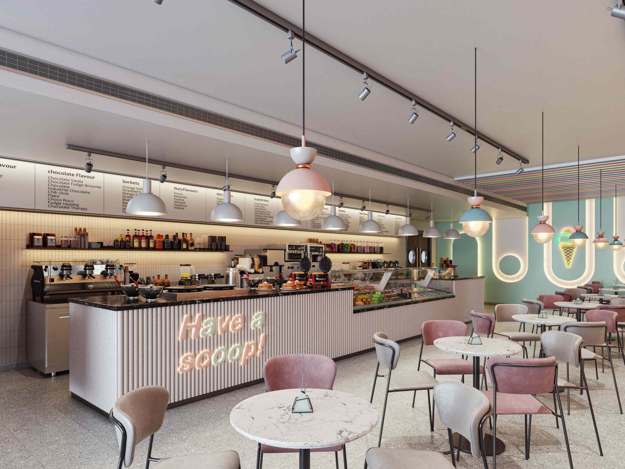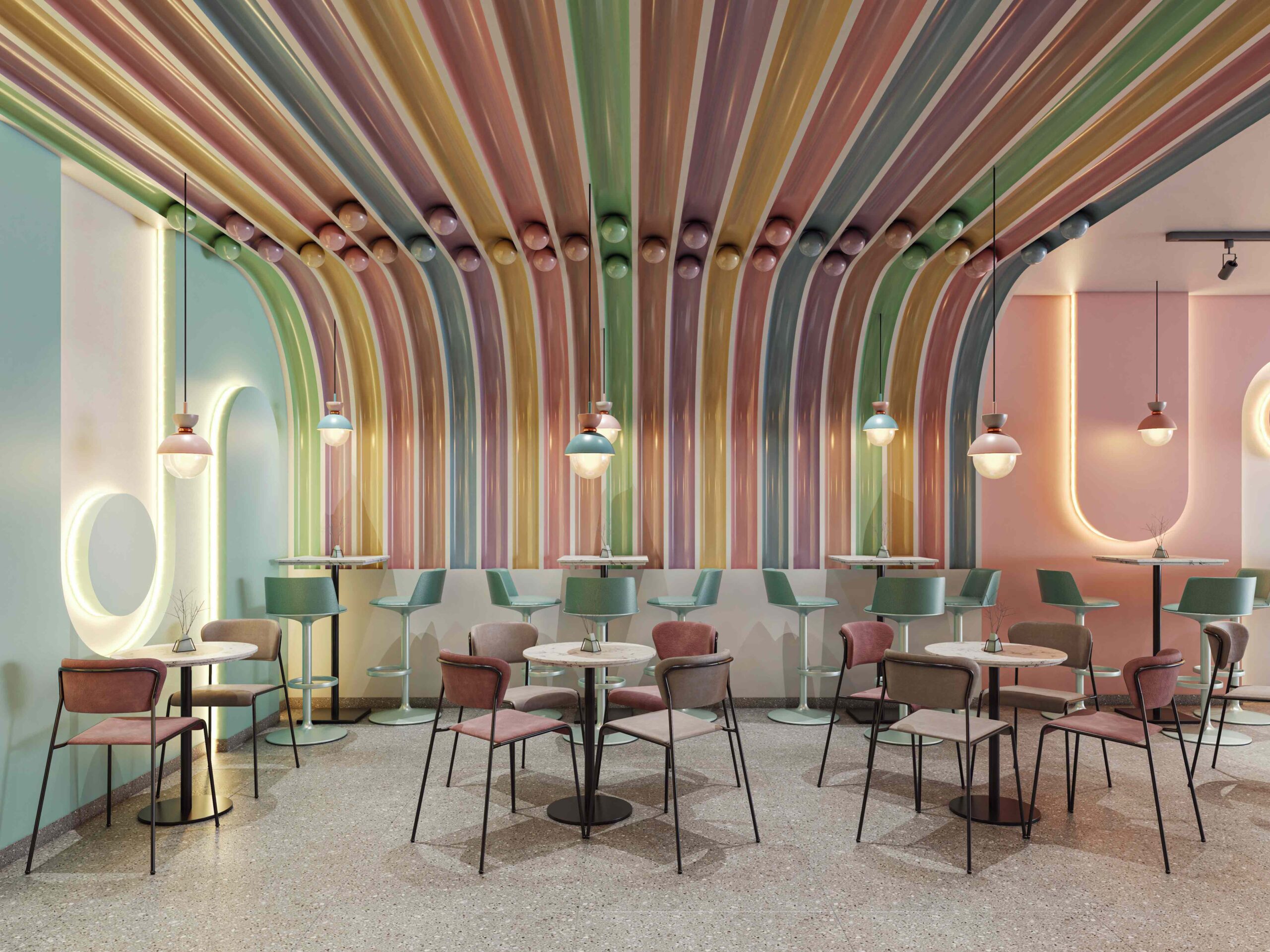 Zia company has the credit for designing the hotel’s ice cream bar, it is a vibrant, colorful space designed to celebrate the joy of ice cream. With a lively array of hues reflecting the many flavors available, the bar invites guests to indulge their sweet cravings in a playful atmosphere.