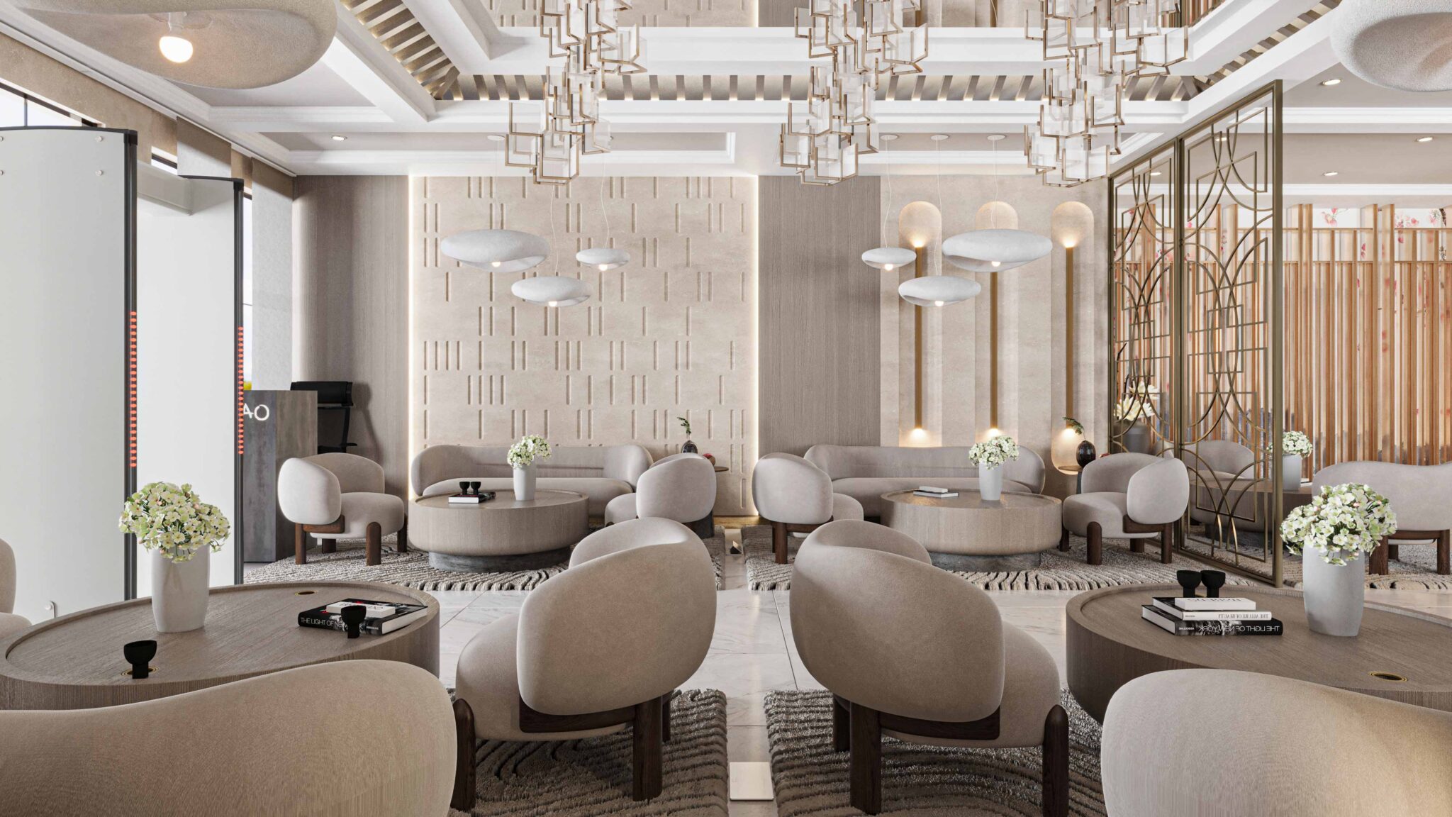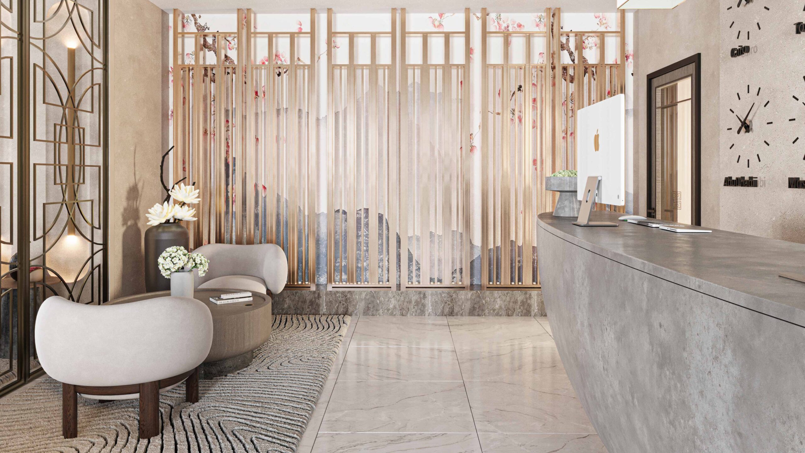 Zia company has the credit for designing a hotel’s lobby using the Wabi-Sabi Japanese style, embracing the essence of simplicity and natural beauty. The lobby features organic textures, earthy tones, and understated decor that exude tranquility and warmth. The minimalist design creates an inviting atmosphere, allowing guests to experience the beauty of imperfection and the peaceful harmony that defines Wabi-Sabi aesthetics.